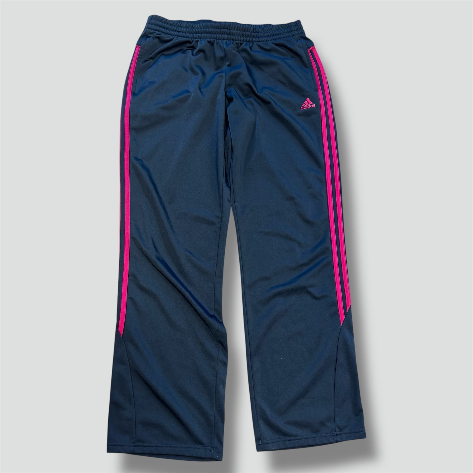 Adidas pink stripes vintage trackpants, this stylish retro item made from comfortable polyester features the iconic Adidas stripes in a soft pink colorway. With an adjustable waistband, these pants offer flexibility and a flattering fit, perfect for casual wear or streetwear looks. Please note that this item is preowned and the waistband is adjustable — the given measurements reflect the minimum.