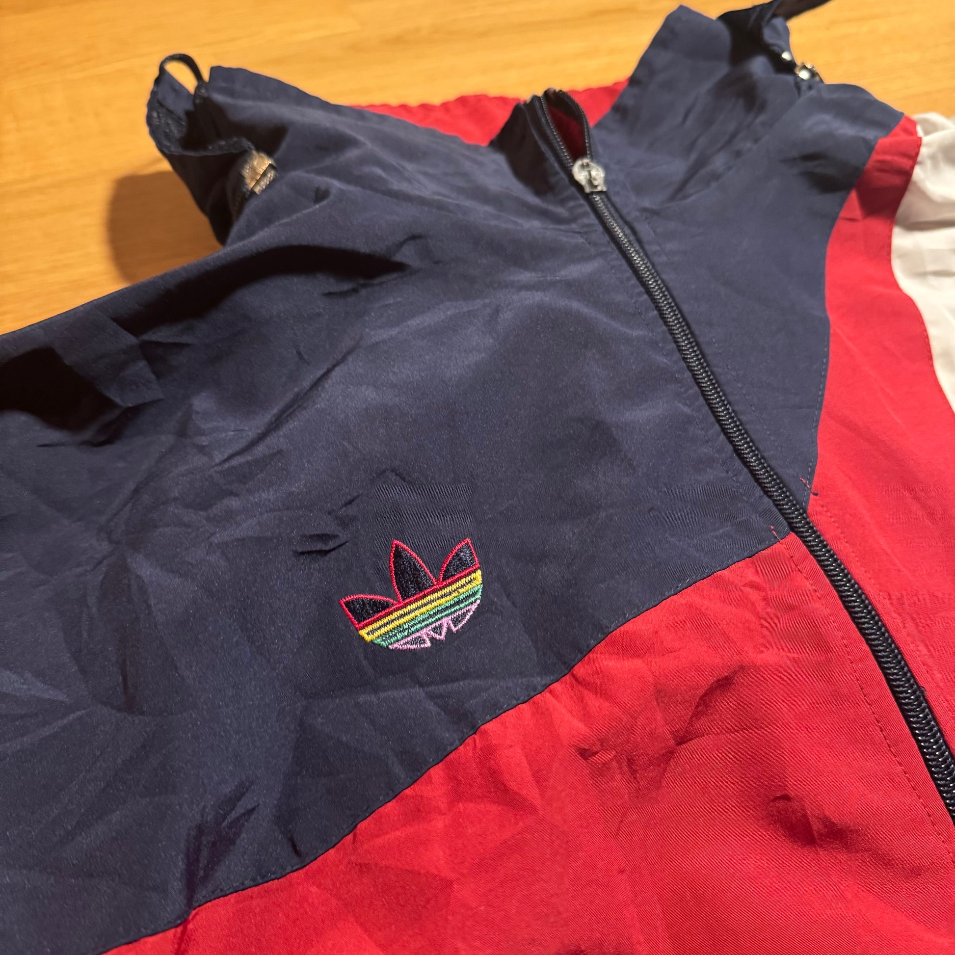 Adidas vintage 90s stylish track jacket, this stylish streetwear track jacket featuring the rainbow color logo is a rare vintage piece that captures the vibrant aesthetic of 90s sportswear. Please note that this item is preowned and shows signs of wear consistent with its age. The item’s zipper is damaged, making it slightly harder to open. Item has no size tag but fits an L, please refer to the measurements indicated for accuracy.
