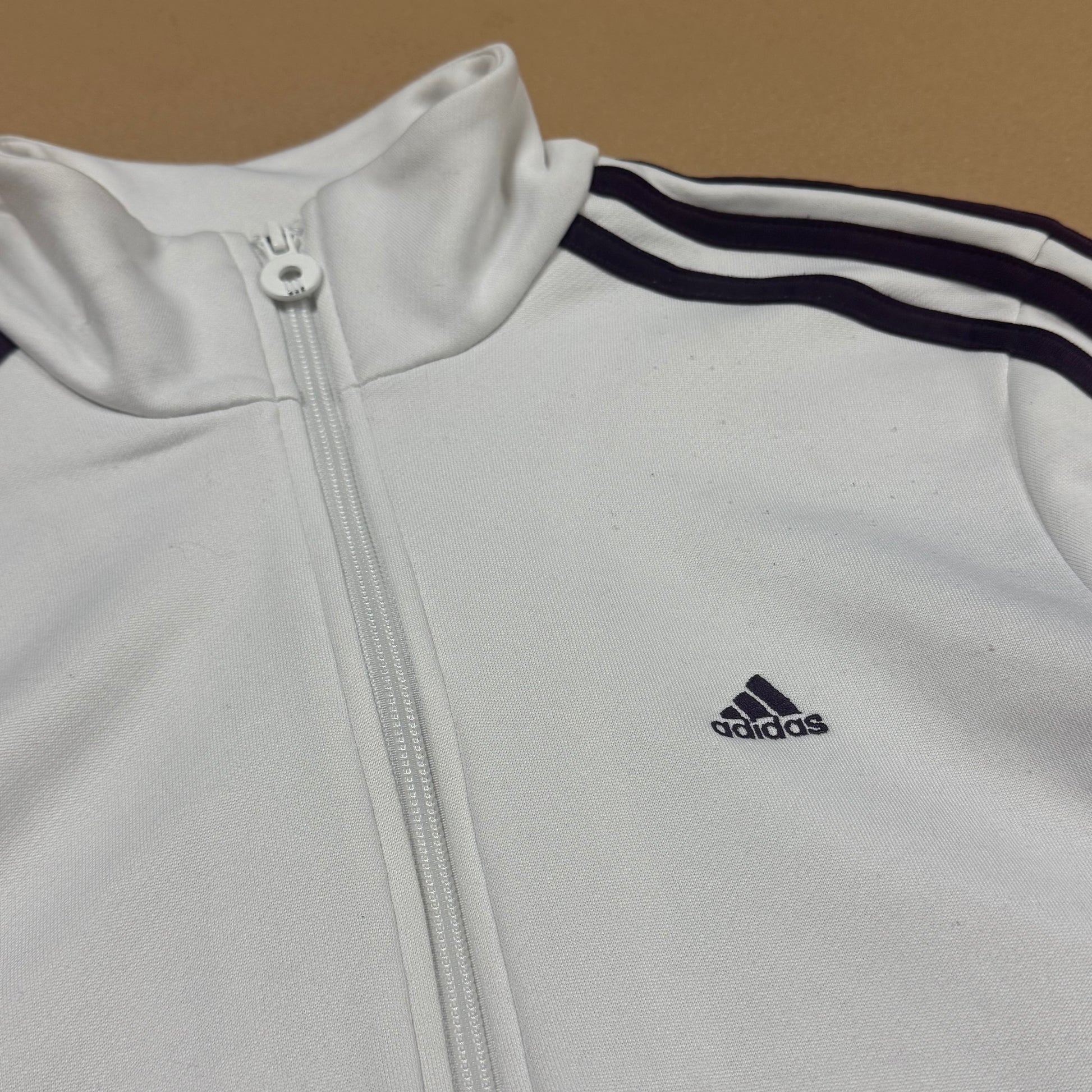 Adidas Y2K white three-stripe track jacket, this stylish retro women’s track jacket from Adidas features a classic sporty design with a slim silhouette. Please note that this item is preowned and may show minor signs of wear. Item is a women’s size 40 that fits rather small; please refer to the measurements provided for accuracy.