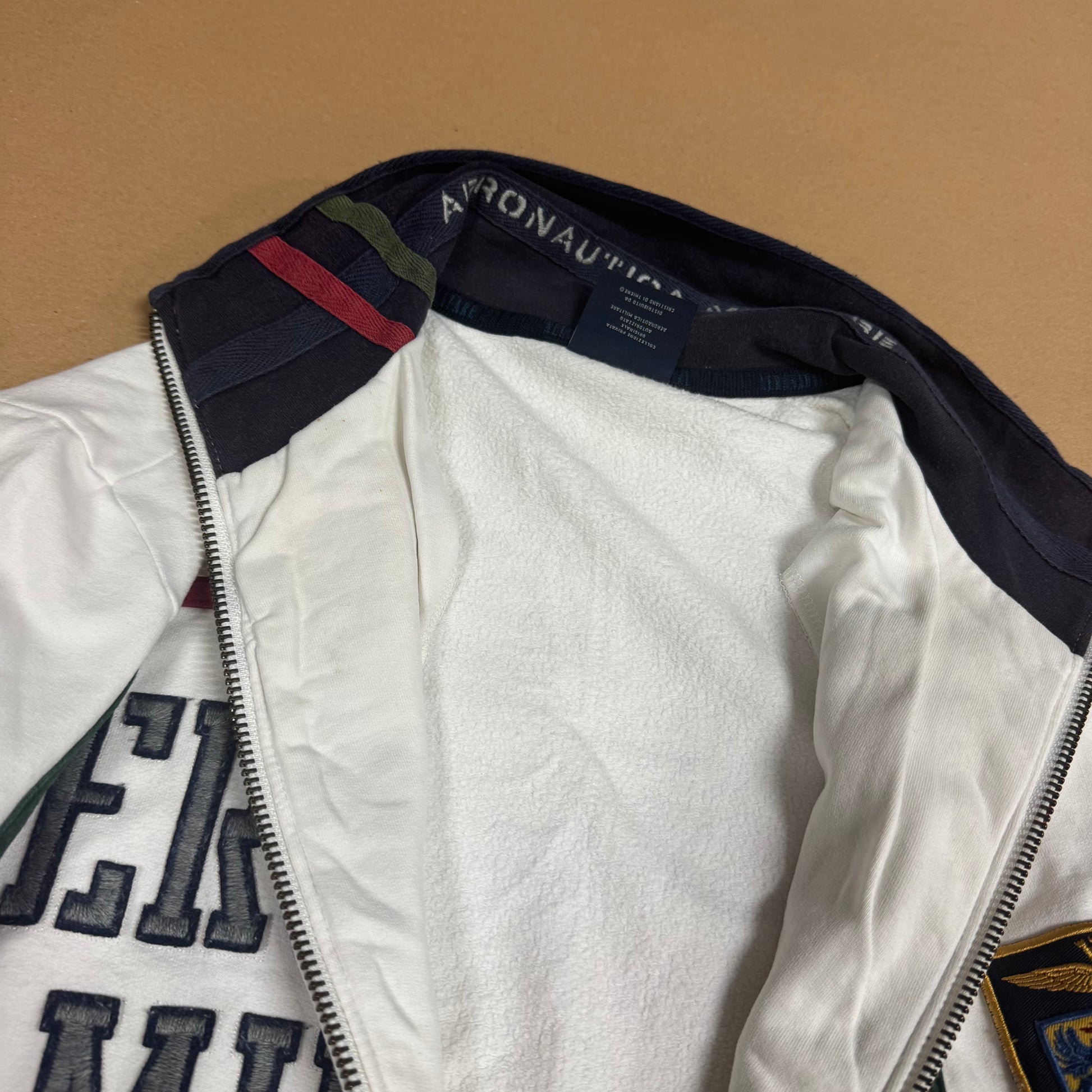 Aeronautica Militare Europe vintage zip-up jacket, this stylish zip-up jacket from the Italian luxury fashion brand Aeronautica Militare is a standout addition to any wardrobe, combining sporty design with premium craftsmanship. Please note that this item is preowned and may show minor signs of wear. Item is a size S with a loose fit for men, please refer to the measurements for accuracy.