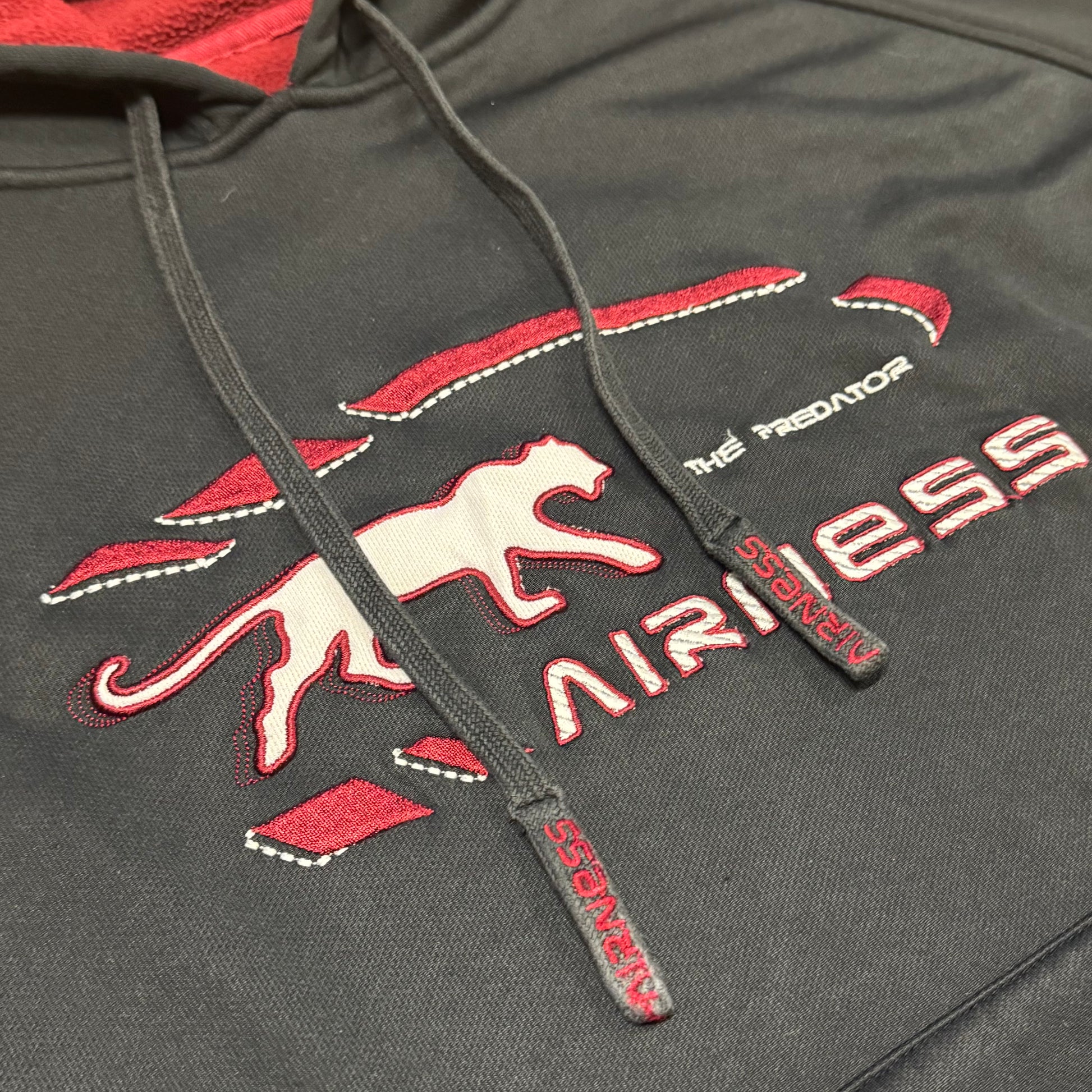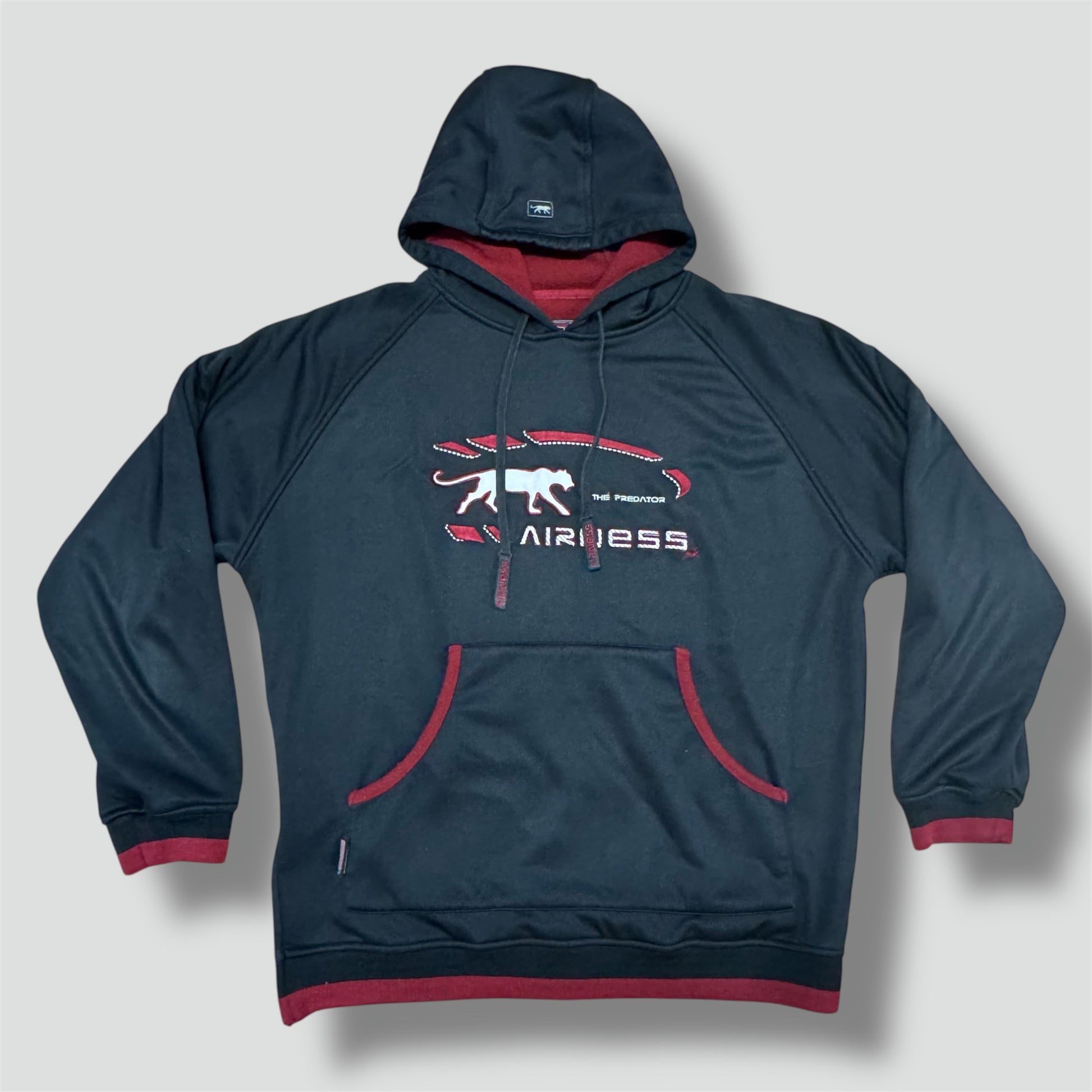 Airness streetwear style black hoodie, this stylish sportswear hoodie crafted from polyester offers a comfortable and classic streetwear look. Please note that this item is preowned and shows minor signs of wear consistent with its age. Item is a size L; please refer to the measurements indicated for accuracy.