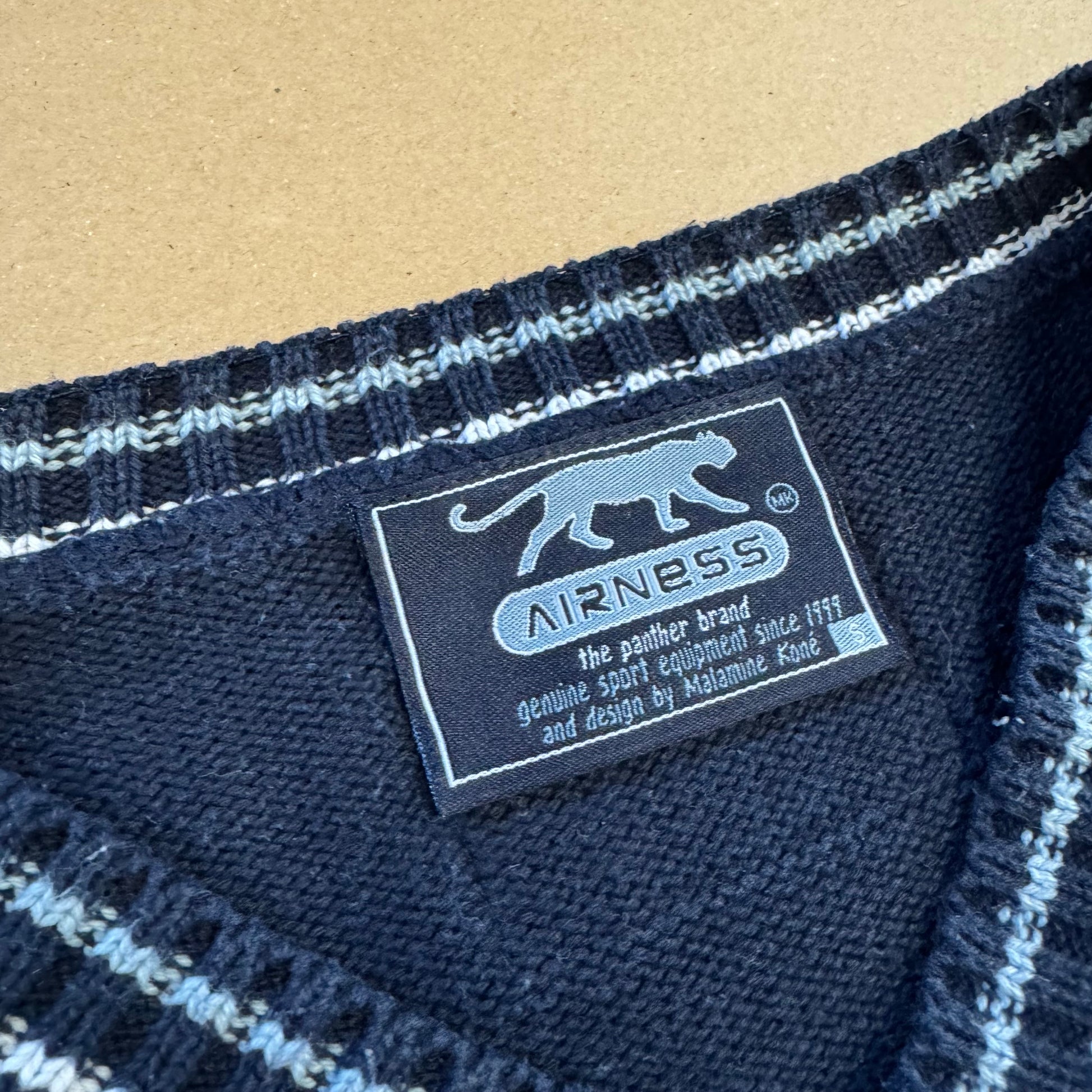 Airness vintage knitted v-neck sweatshirt, this stylish retro 90s sweater is a classic piece, perfect for adding a unique and casual touch to your wardrobe. Please note that this item is preowned and may show minor signs of wear. Item is a size S with a loose fit, please refer to the measurements indicated for accuracy.