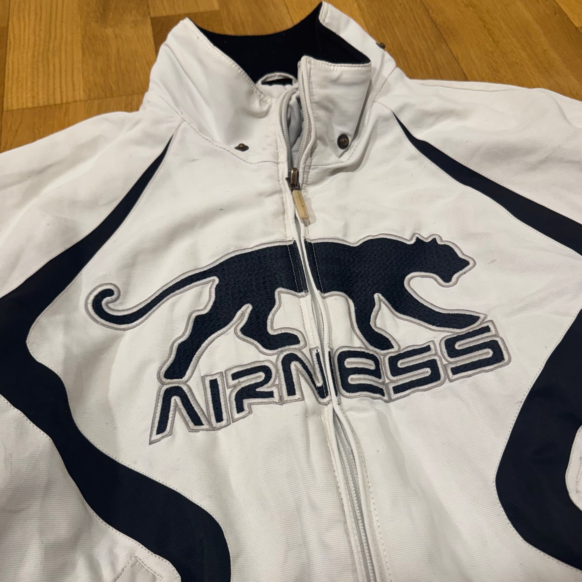 Airness white streetwear warm jacket, this stylish double-layer loose-fitting jacket from Airness is a classic 00s streetwear piece with a comfortable oversized silhouette. Please note that this item is preowned and shows signs of wear. Item is a size XL, please refer to the measurements below for accuracy.