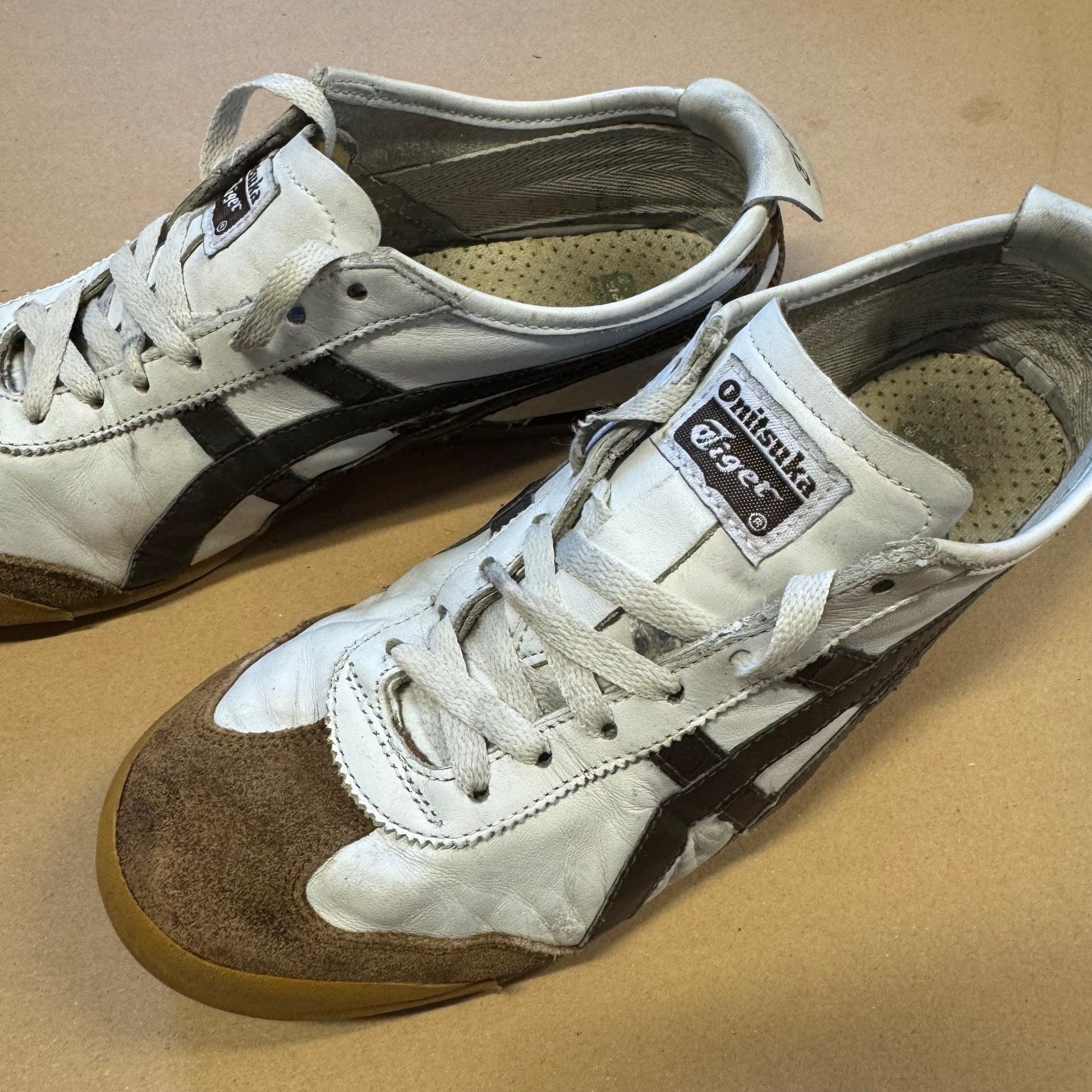 Asics Onitsuka Tiger OG white shoes, this stylish streetwear classic offers a vintage sporty look. Please note that this item is preowned and shows clear signs of wear and use. Item is a shoe size EU 42.5 and comes without the original box.