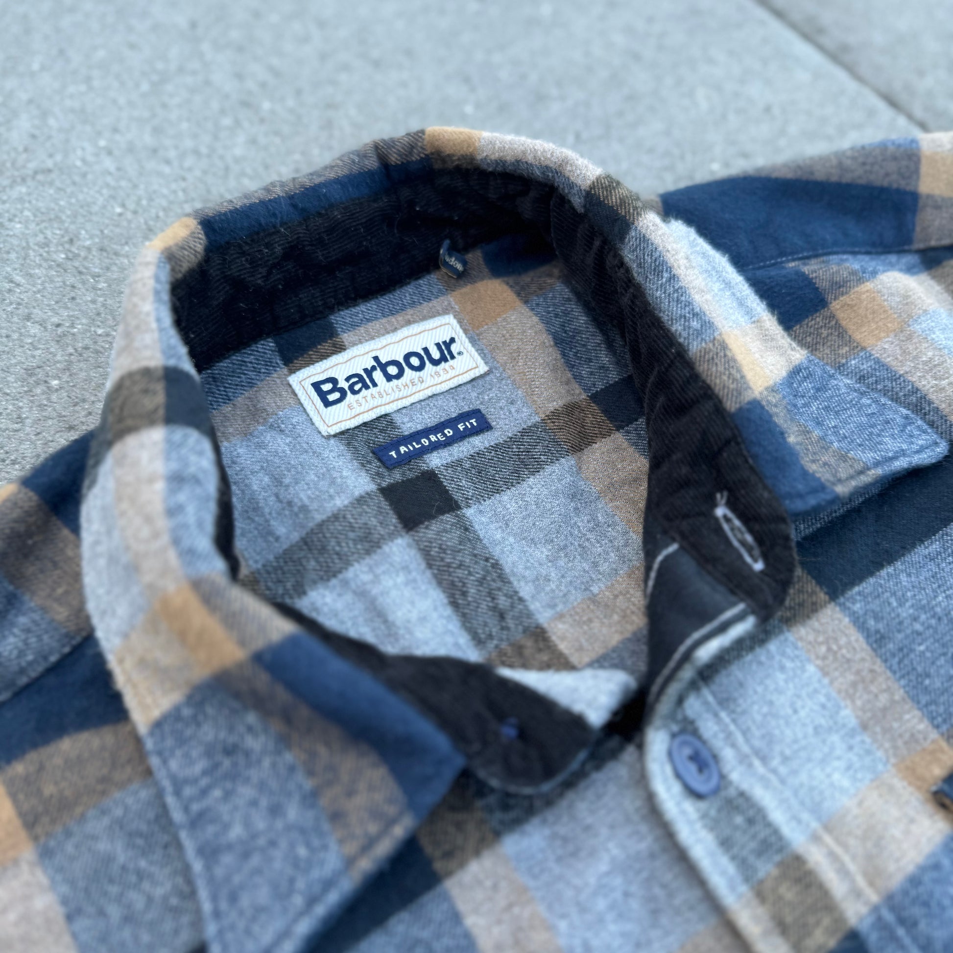 Barbour grey checkered light jacket, this stylish grey jacket crafted from cotton with a checkered pattern is a versatile everyday piece, combining Barbour’s classic British design with casual sophistication. Please note that this item is preowned and may show minor signs of wear consistent with its age. Item is a size M with a loose fit, please refer to the measurements indicated for accuracy.