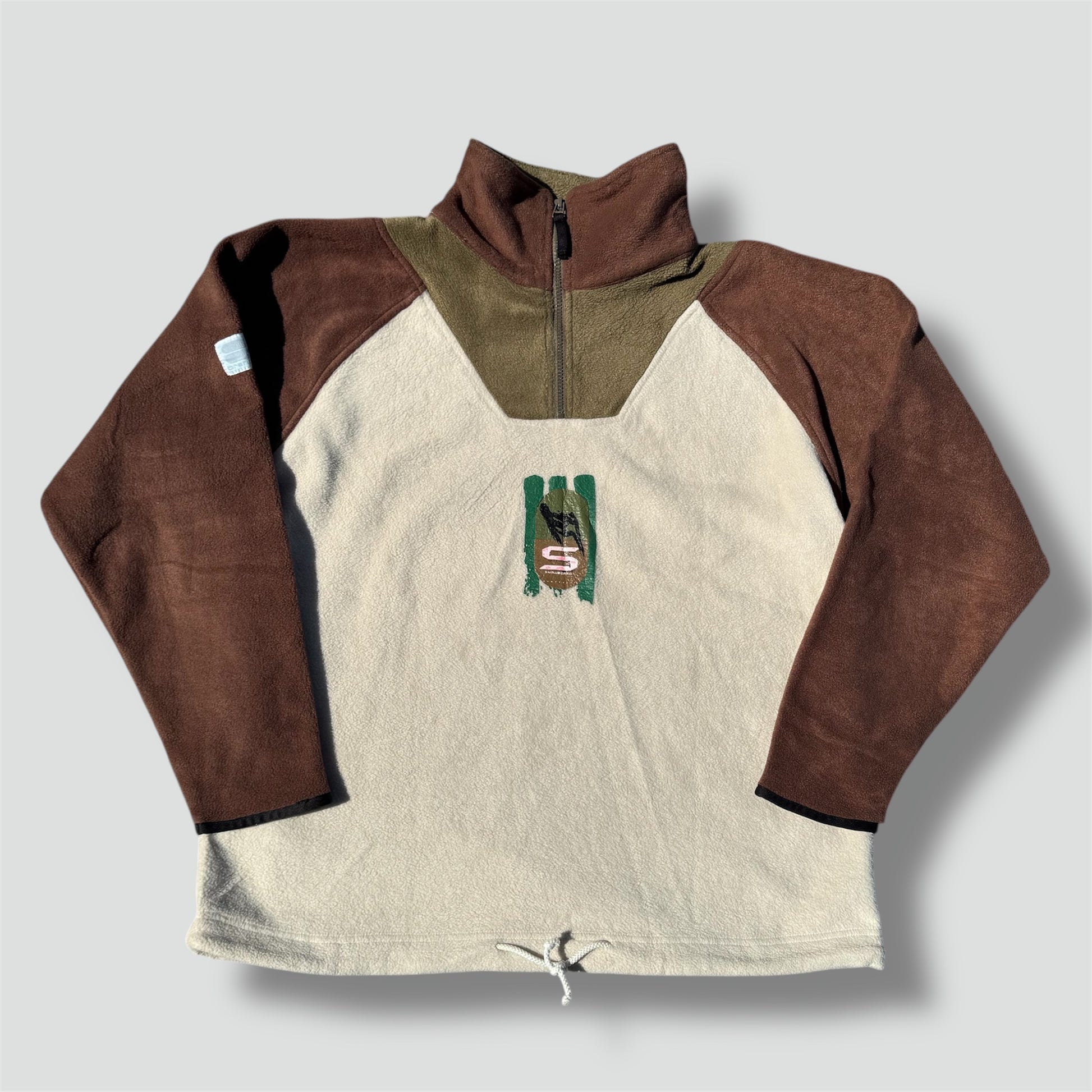 Brent Board vintage fleece sweater, this stylish sweatshirt with a quarter zip is crafted from soft polyester, perfect for casual and cozy wear. Please note that this item is preowned and may show minor signs of wear. Item is a loose size M, please refer to the measurements indicated for accuracy.
