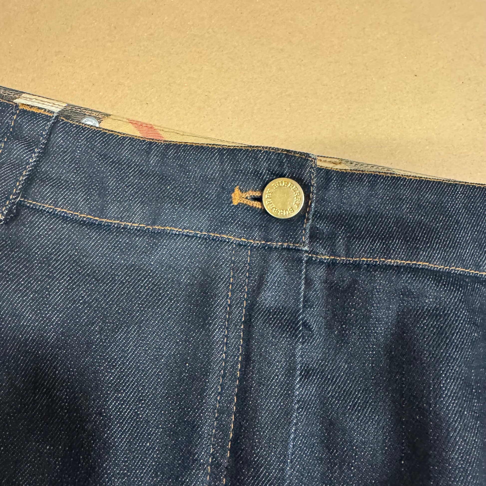 Burberry London vintage denim skirt, this stylish skirt from the luxury brand Burberry is a timeless wardrobe piece, perfect for a chic and casual look. Crafted from quality denim, it features classic tailoring and refined detailing. Please note that this item is preowned and shows minor signs of wear. Item is a size 48, please refer to the measurements for accuracy.