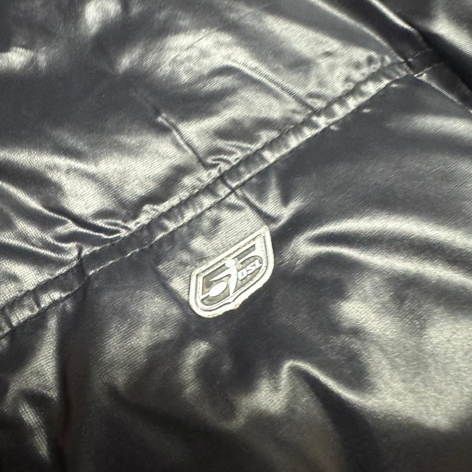DSL 55 Diesel black puffer jacket, this stylish winter jacket from DSL 55 Diesel offers classic design and warmth for colder days. Please note that this item is preowned and may show minor signs of wear. Item is a size M for men; please refer to the measurements indicated for accuracy.