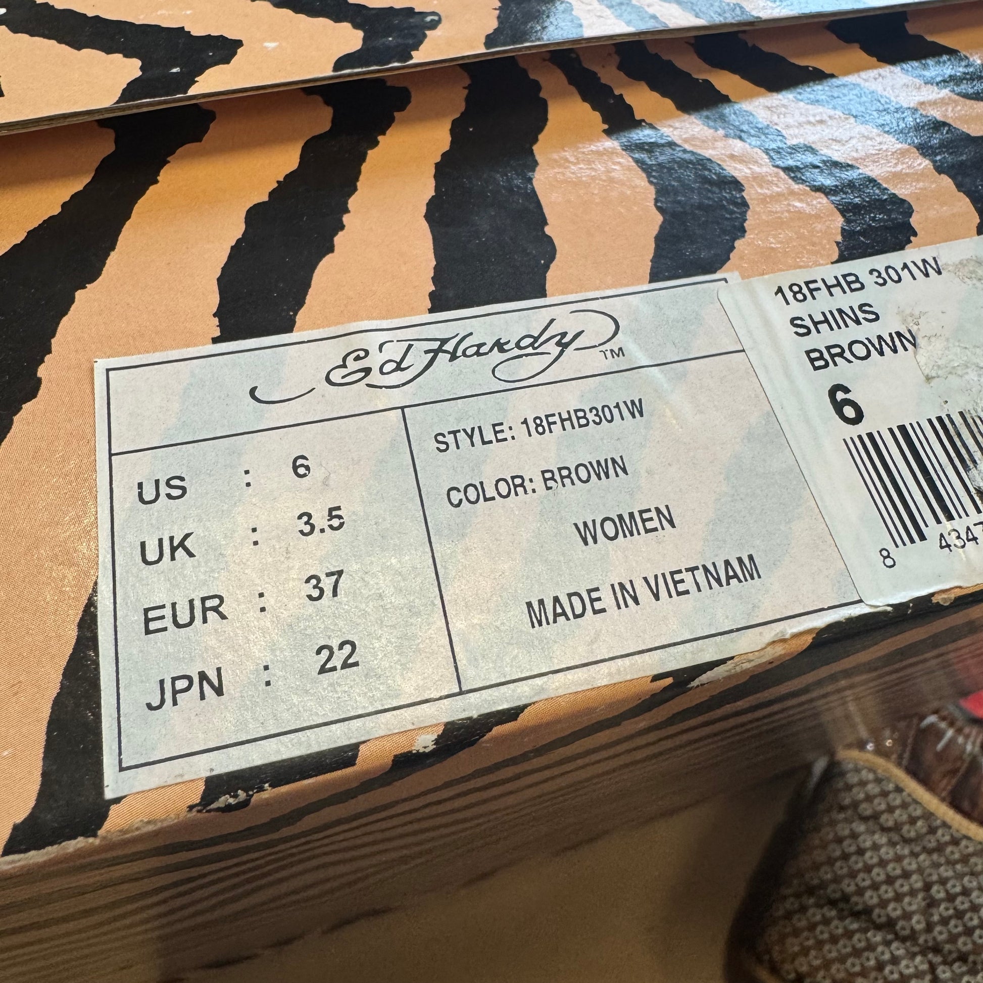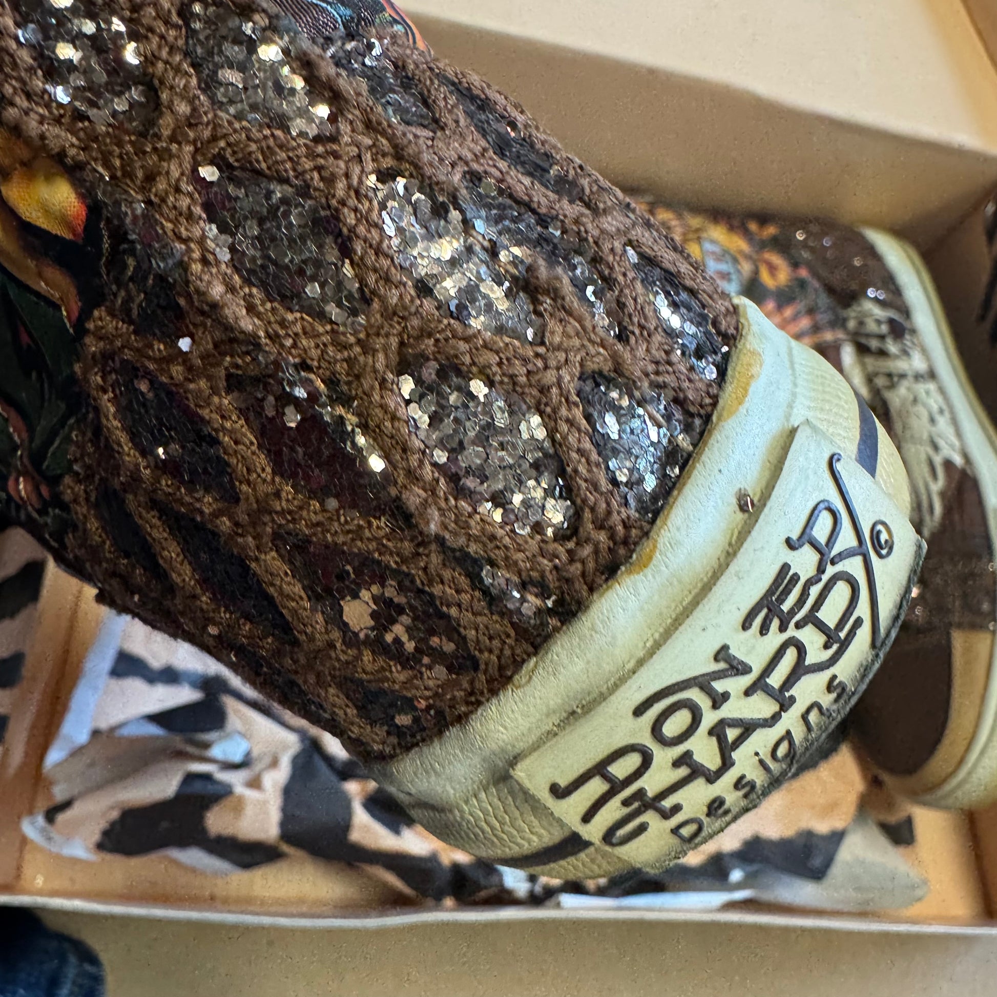 Ed Hardy glitter vintage shoes, these stylish high boots feature a sparkling design for a standout look. Please note that this item is preowned and may show minor signs of wear. Item is a size EU 37. Shoes come in the original box.