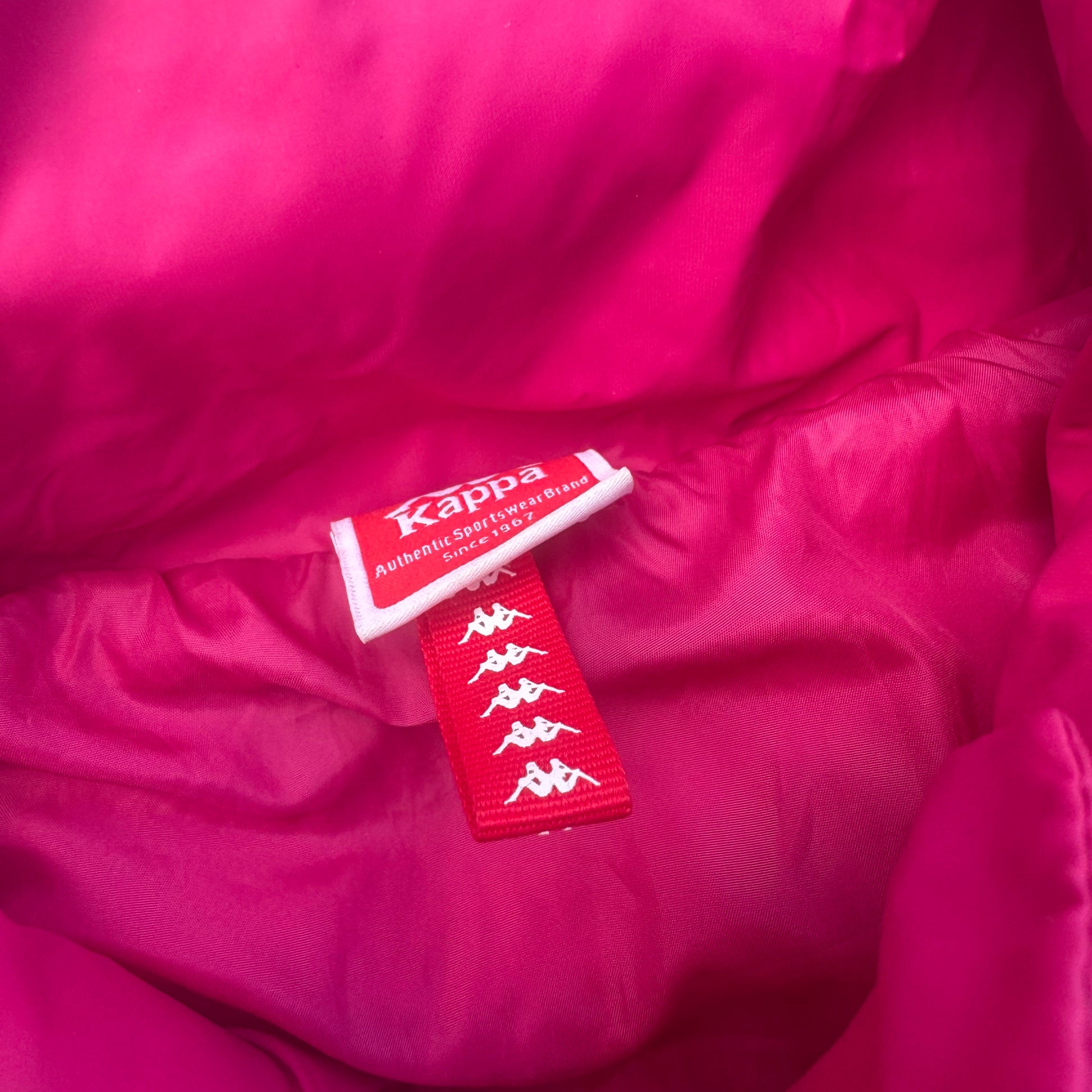 Kappa streetwear Y2K pink puffer jacket, this slightly cropped pink jacket from Robe di Kappa is a stylish addition to any streetwear winter wardrobe. Please note that this item is preowned and shows minor signs of wear. Item is a women’s size S — please refer to the measurements for accuracy.