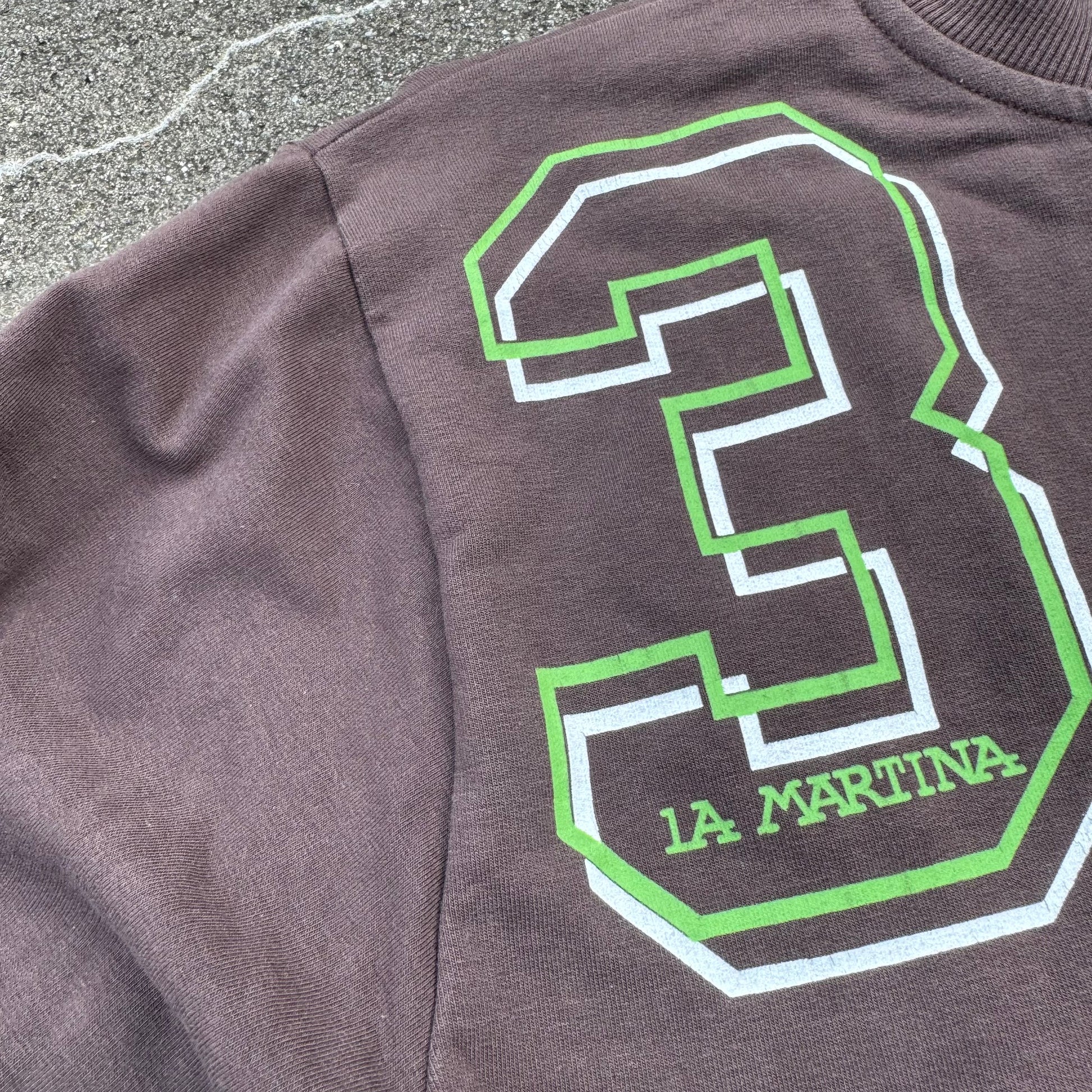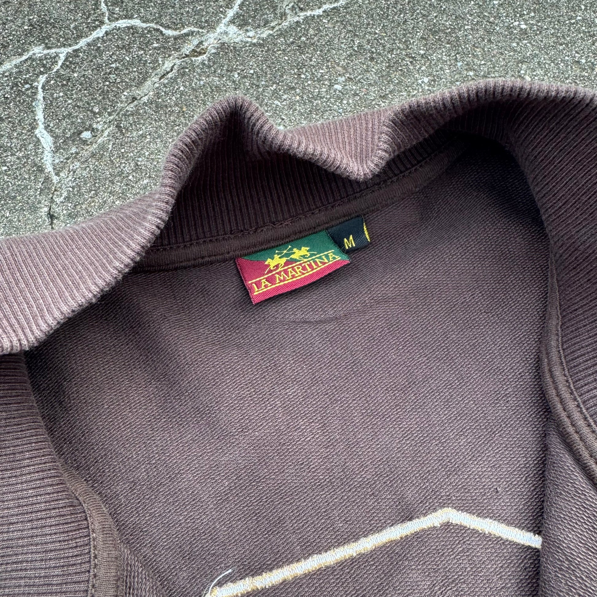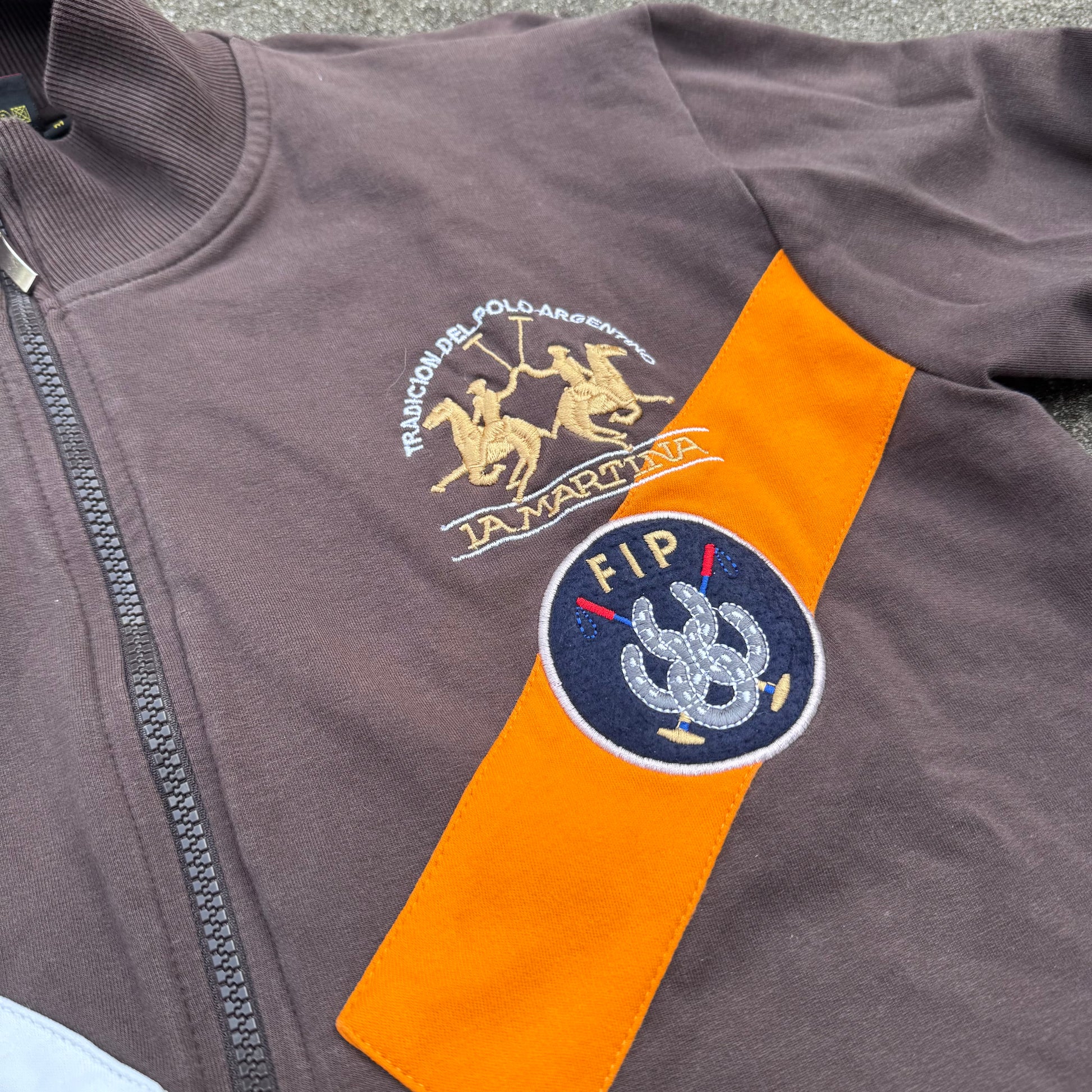 La Martina Argentina brown vintage zip-up, this stylish streetwear designer piece from La Martina Polo is crafted from soft cotton, offering both comfort and refined casual style. Please note that this item is preowned and may show minor signs of wear. Item is a loose size M, please refer to the measurements indicated for accuracy.