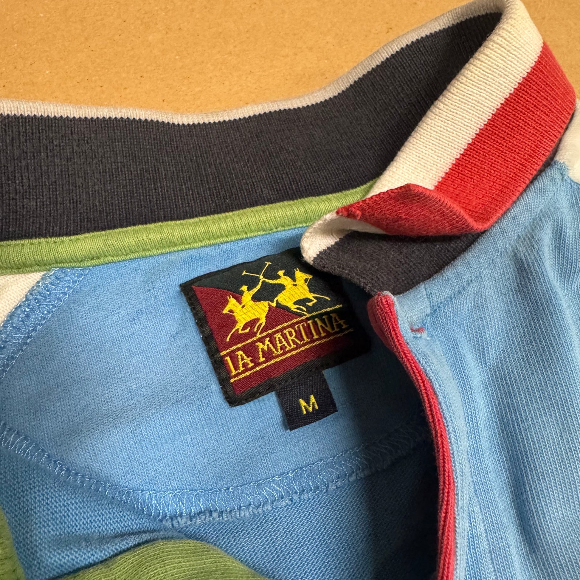 La Martina Euro Champions Italy longsleeve polo, this stylish colorful polo shirt is a standout piece, perfect for adding a sporty and vibrant touch to your wardrobe. Please note that this item is preowned and shows minor signs of wear. Item is a size M, please refer to the measurements indicated for accuracy.