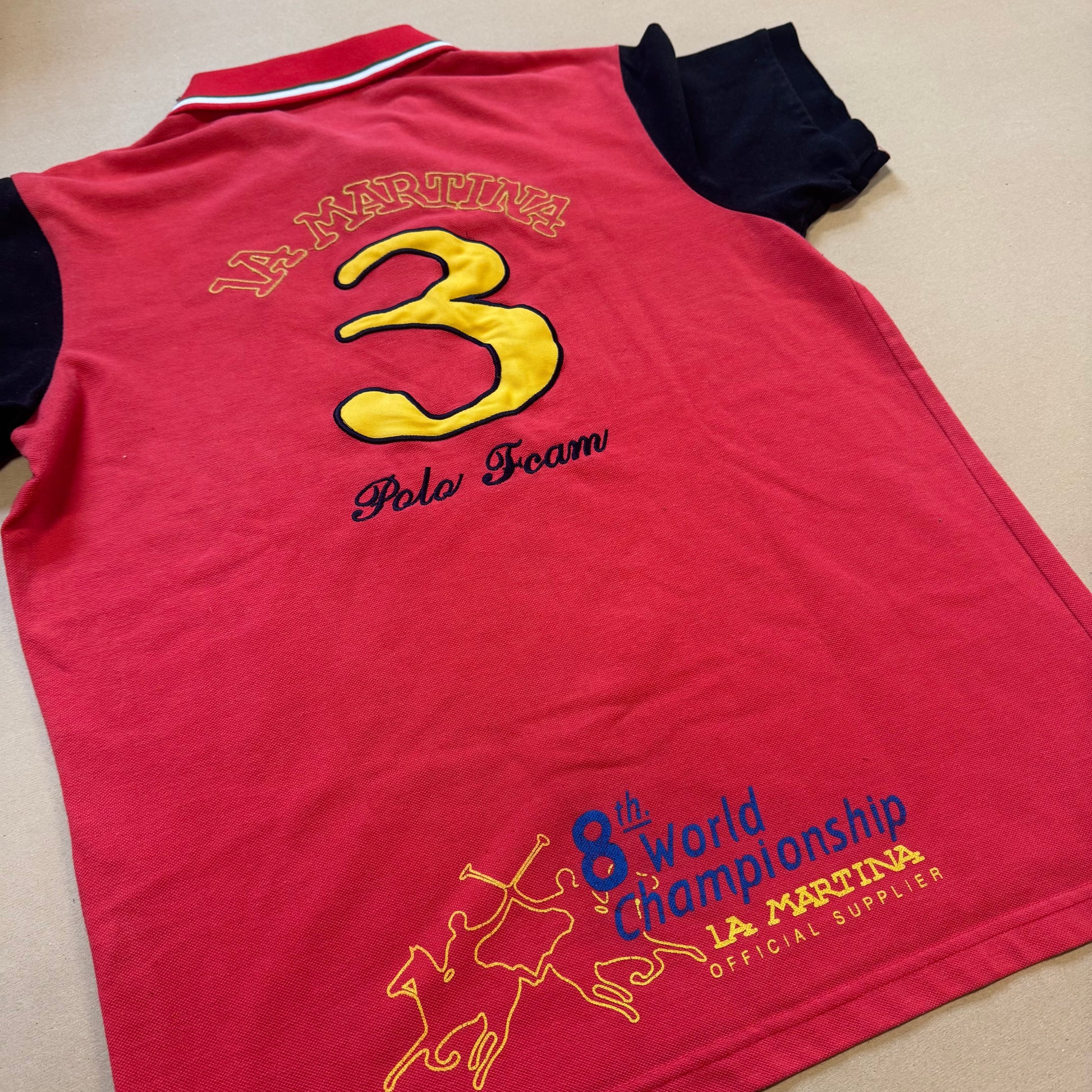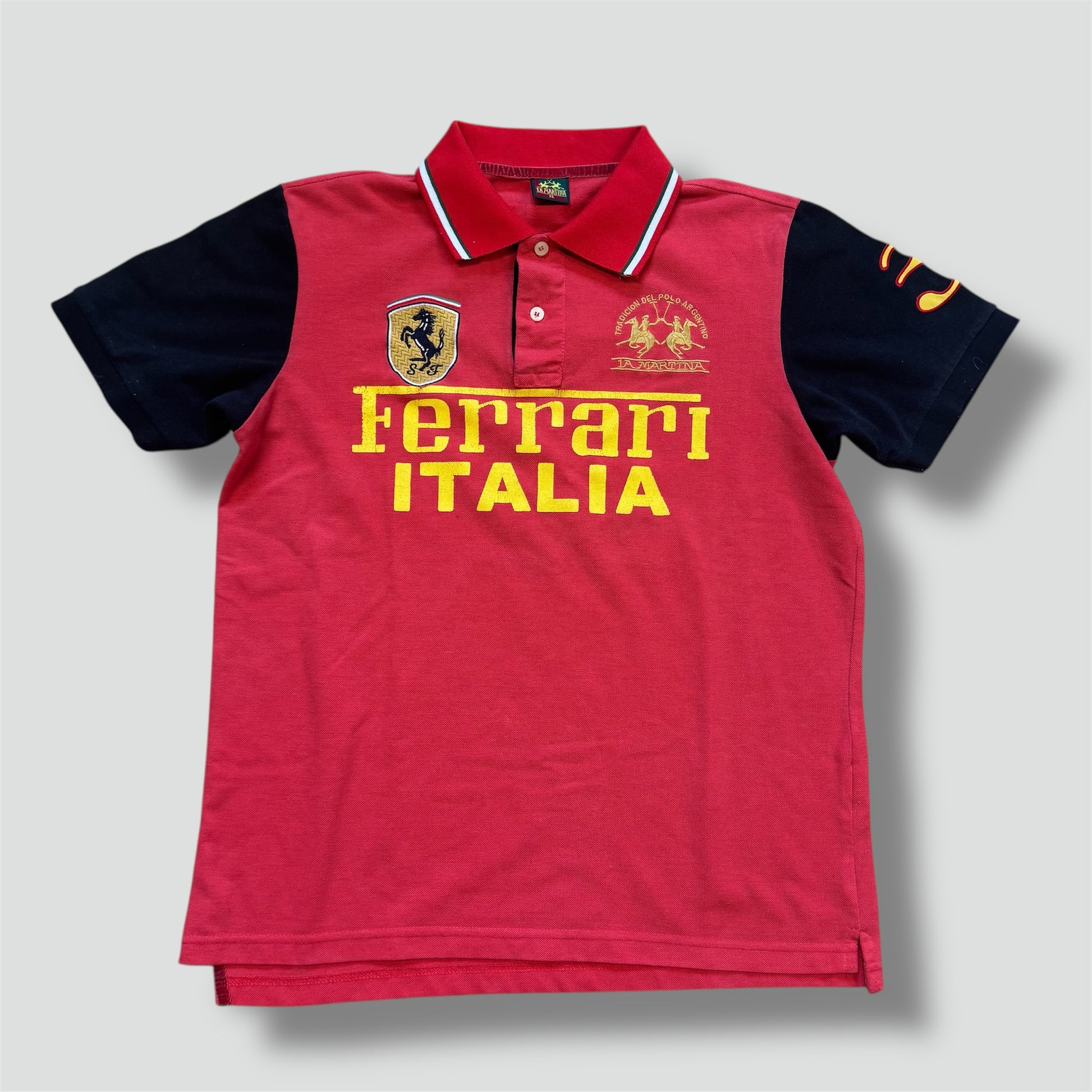 La Martina Ferrari vintage poloshirt, this stylish retro 90s poloshirt from the Argentinian polo supplier La Martina is a classic sporty piece, perfect for adding a bold vintage touch to your wardrobe. Please note that this item is preowned and may show minor signs of wear. Item is tagged as an XL but fits an M, please refer to the measurements indicated for accuracy.
