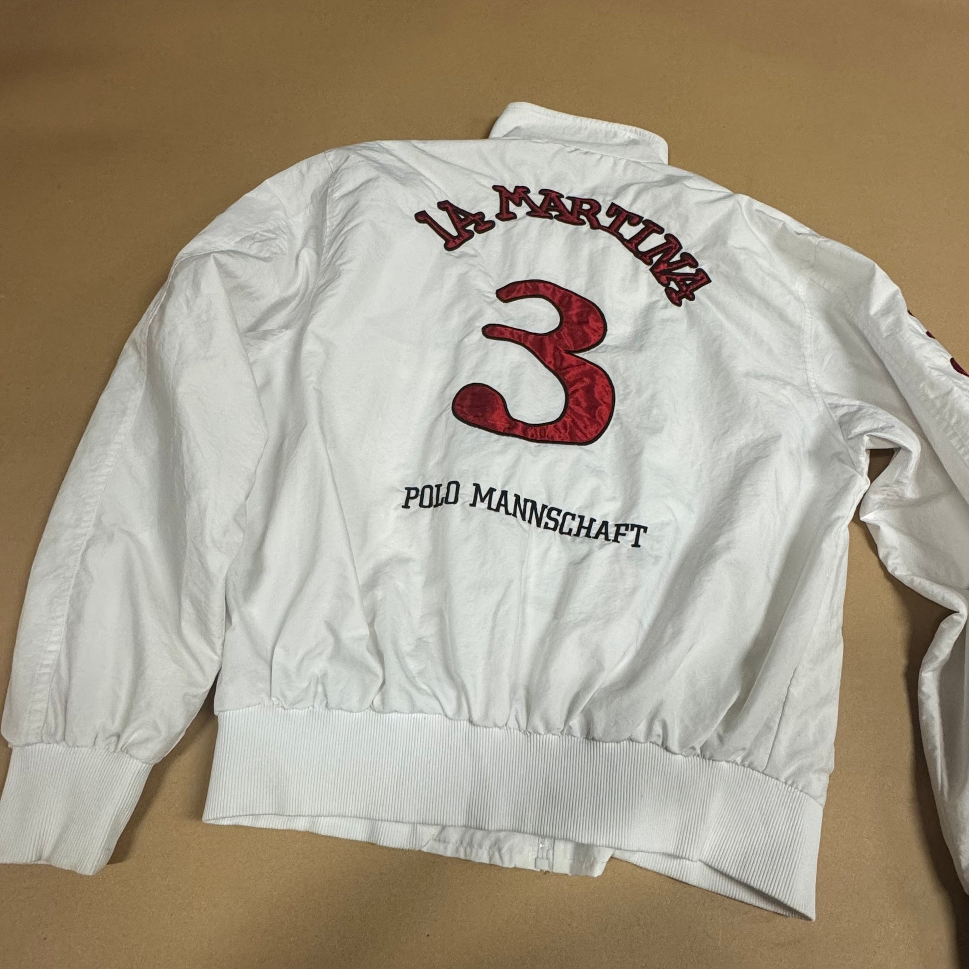 La Martina Porsche 2010 streetwear jacket, this stylish jacket from the Porsche Stuttgart 2010 collection is a rare and limited streetwear piece, combining sporty design with luxury craftsmanship. Please note that this item is preowned and may show minor signs of wear. Item is a size L, please refer to the measurements for accuracy.