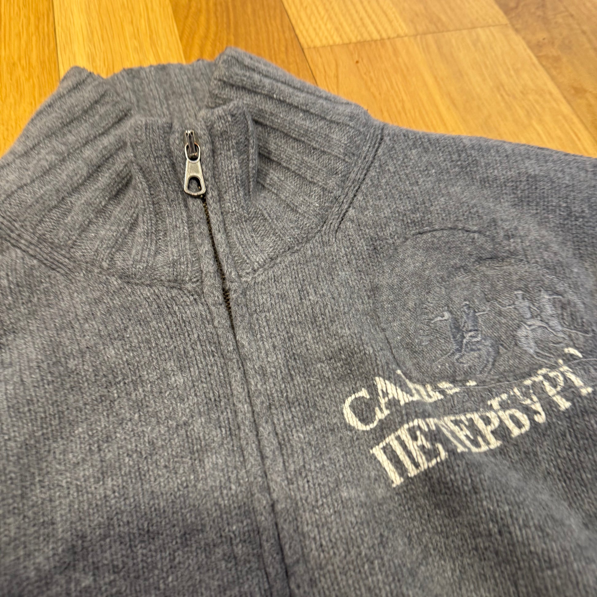 La Martina Replica women’s polo grey wool zip-up, this stylish knitted jacket crafted from soft and warm wool is a cozy and elegant piece, perfect for layering in casual and semi-casual outfits. Made from wool, it offers warmth and comfort with a flattering fit. Please note that this item is preowned and may show minor signs of wear consistent with use. Item is a women’s size M, please refer to the measurements indicated for accuracy.