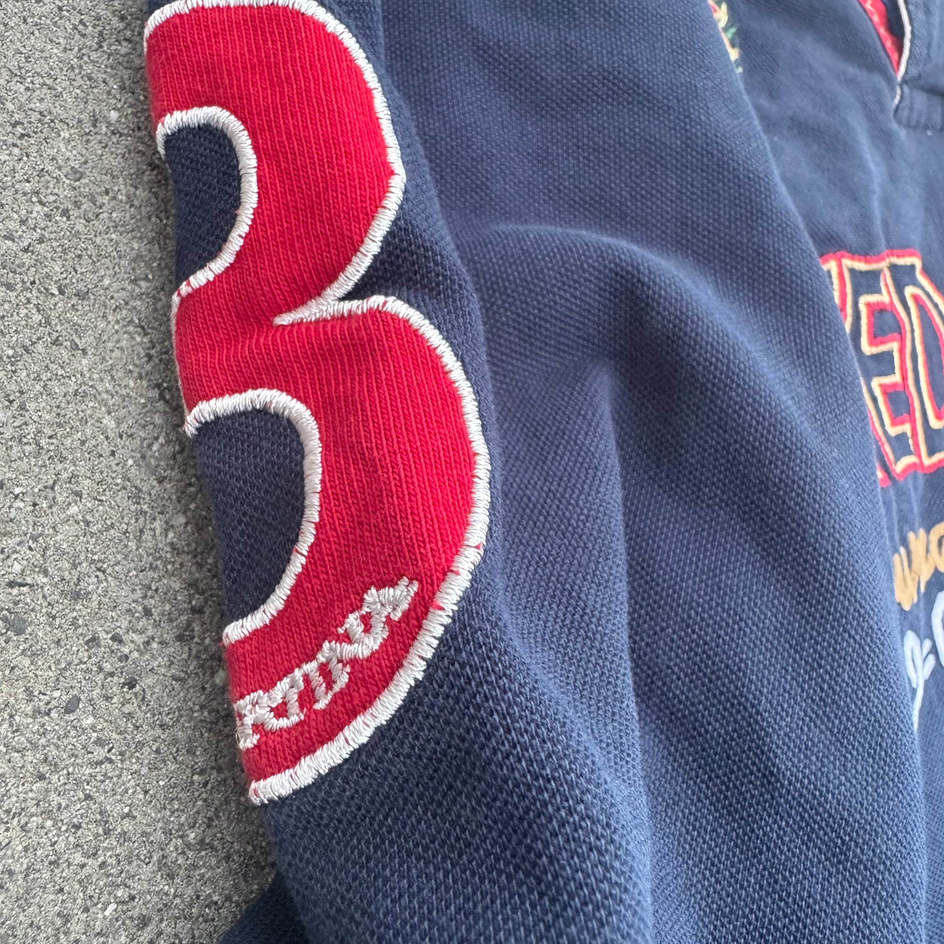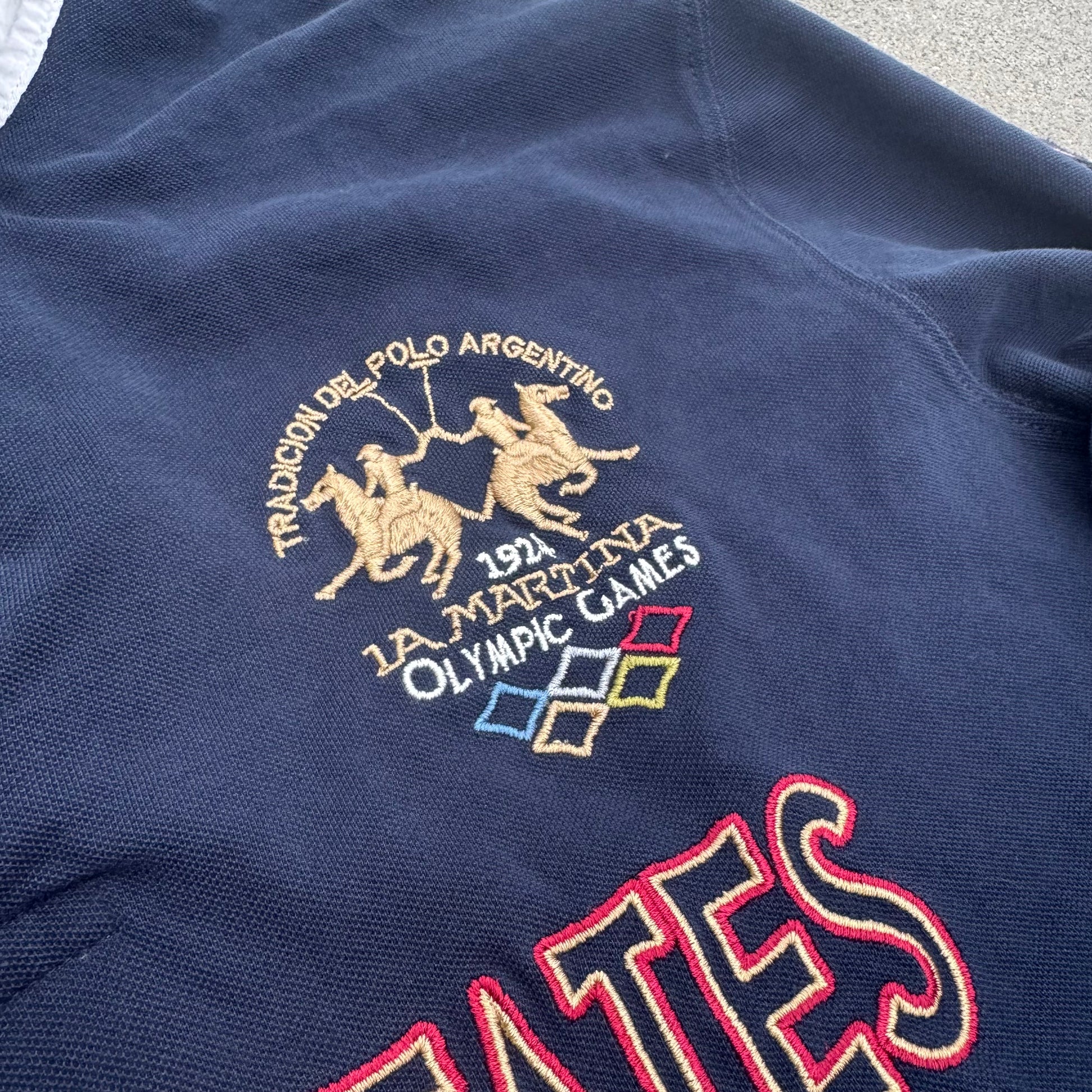 La Martina United States Polo Tournament long-sleeve, this stylish polo shirt from the limited US Tournament La Martina collection is a designer piece with vintage charm, perfect for casual and smart-casual outfits. Please note that this item is preowned and shows minor signs of wear consistent with its age. Item is a size L, please refer to the measurements indicated for accuracy.