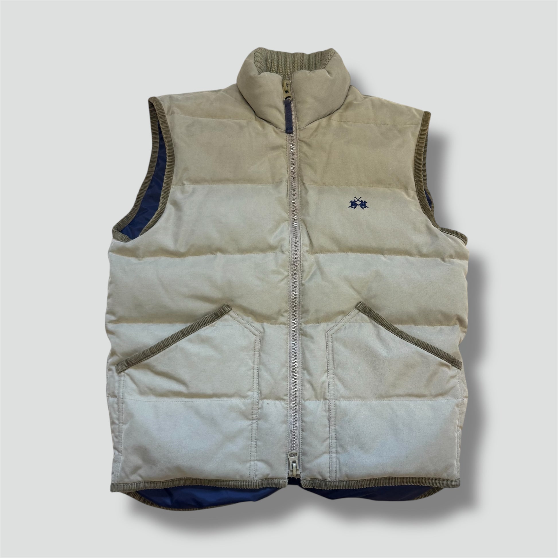 La Martina vintage beige down vest, this stylish winter vest from the Argentinian polo supplier offers classic design and warmth for colder days. Please note that this item is preowned and shows minor signs of wear consistent with its age. Item is a men’s size M; please refer to the measurements indicated for accuracy.