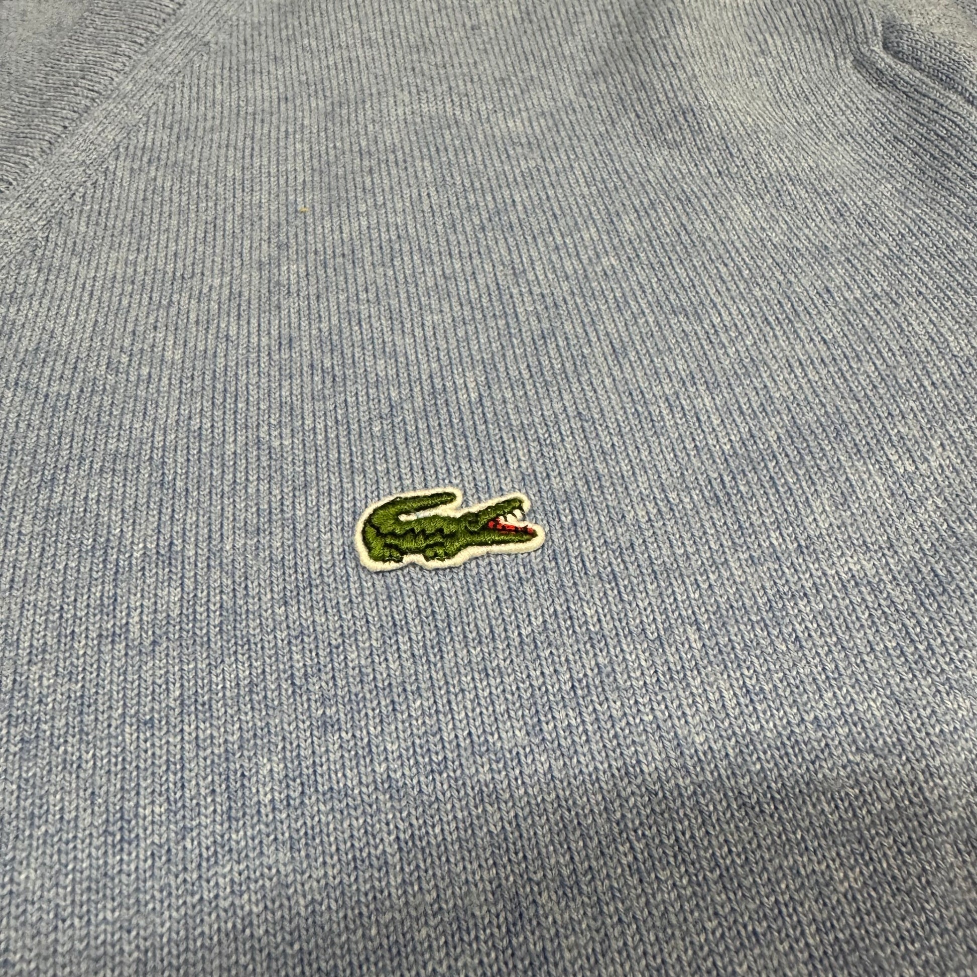 Lacoste baby blue v-neck wool sweatshirt, this stylish sweatshirt from Lacoste offers a refined and timeless look, perfect for smart-casual outfits. Crafted from soft wool, it provides warmth and comfort with a classic fit. Please note that this item is preowned and may show minor signs of wear consistent with its age. Item is a size 6, corresponding to an L, please refer to the measurements indicated for accuracy.