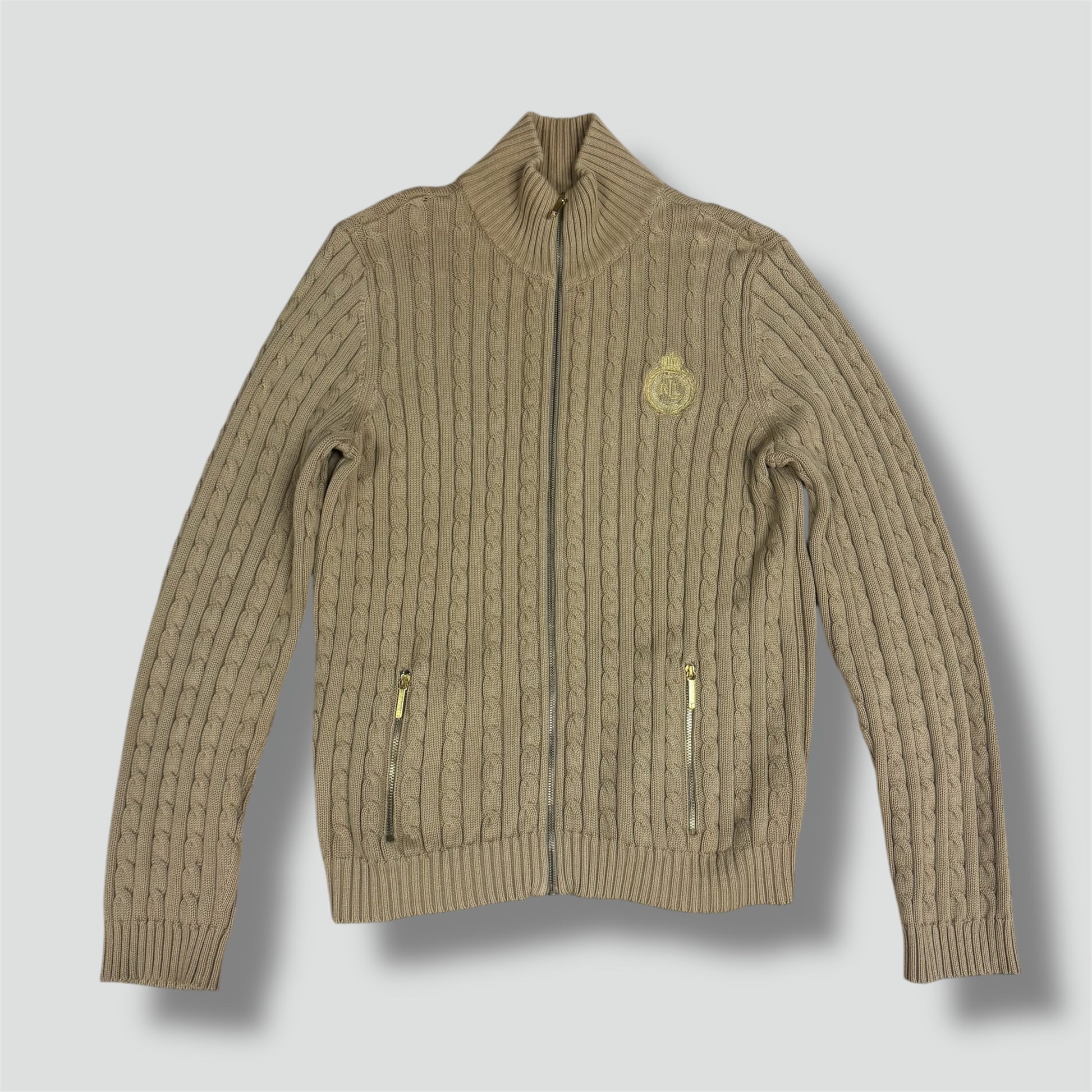 Lauren Ralph Lauren women’s knitted zip-up, this stylish brown knitted jacket is a classic vintage piece, perfect for adding a warm and timeless touch to your wardrobe. Please note that this item is preowned and may show minor signs of wear. Item is a women’s size L, please refer to the measurements indicated for accuracy.