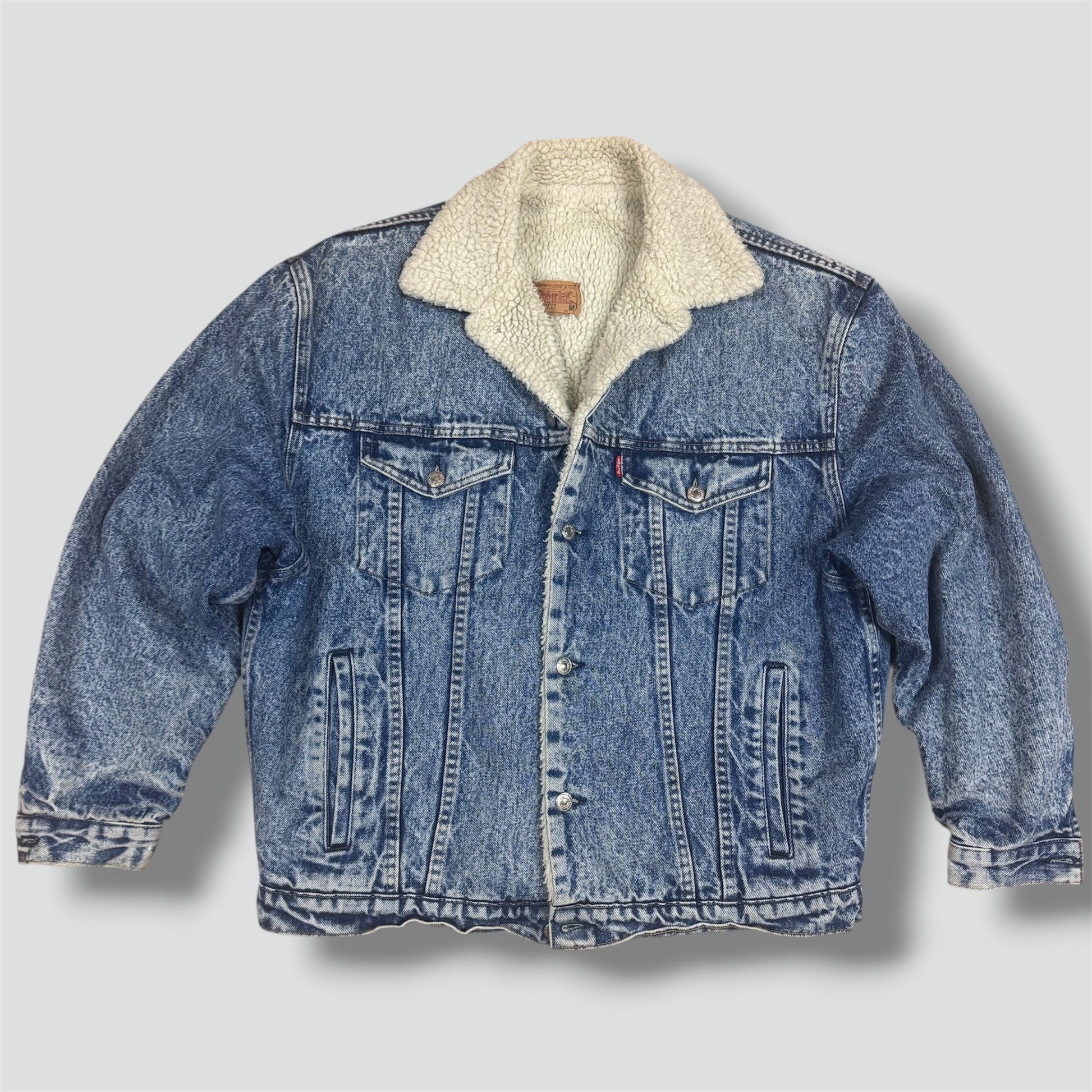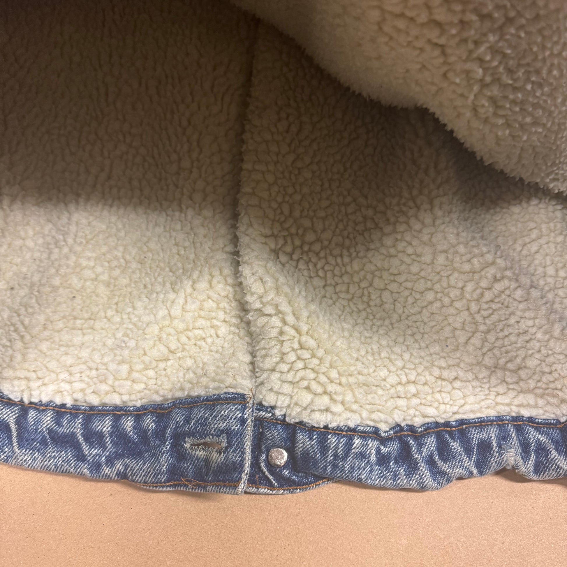 Levi Strauss vintage fluffy denim jacket, this stylish oversized denim jacket features a soft fur-like lining to keep you warm during winter, making it a perfect combination of comfort and streetwear style. Please note that this item is preowned and may show minor signs of wear. Item is a size M with an oversized fit, please refer to the measurements for accuracy.