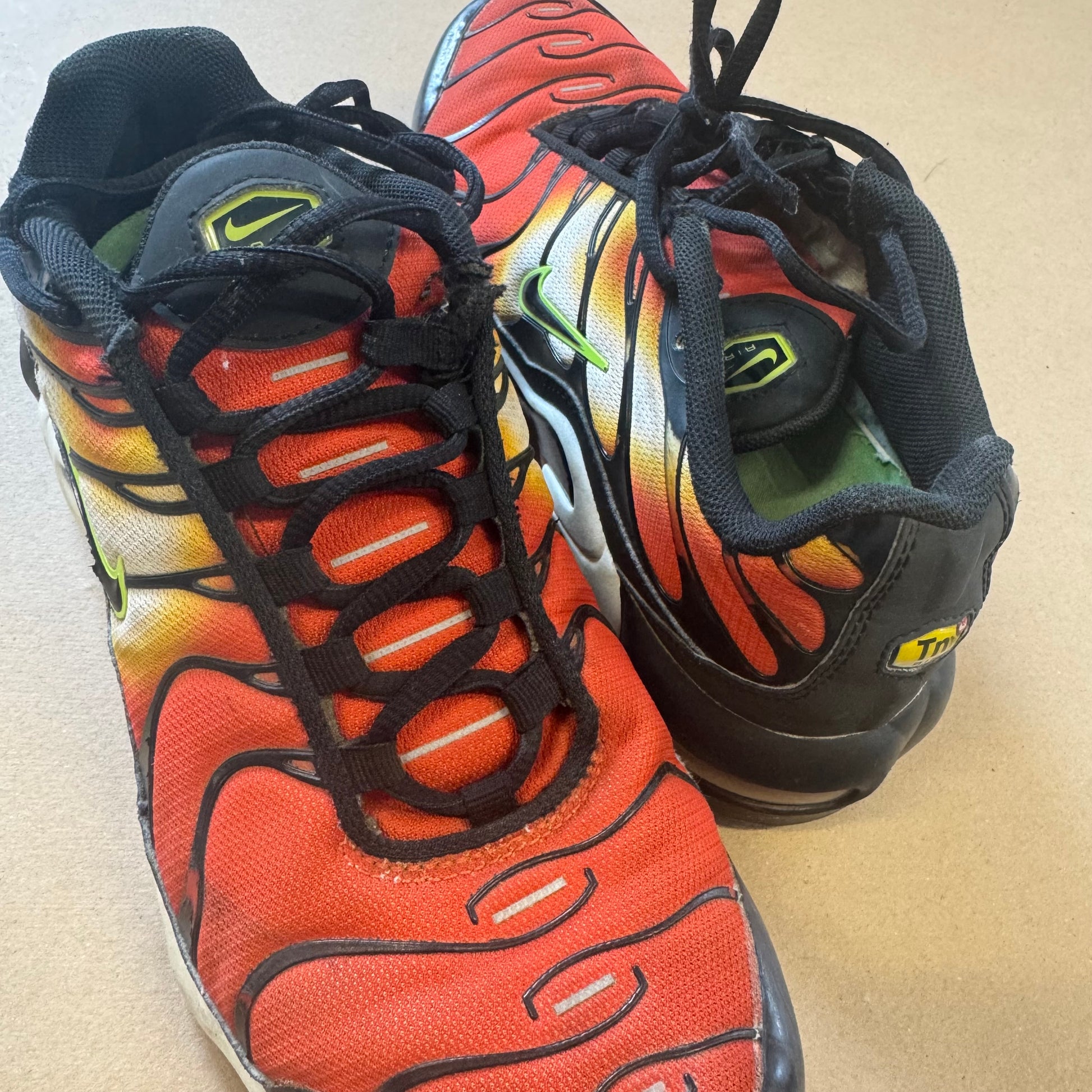 Nike red TN Tigers, these stylish sneakers are a perfect addition to any streetwear outfit. Please note that this item is preowned and shows signs of wear and use. The shoes are a size EU 38. Shoes come without box.