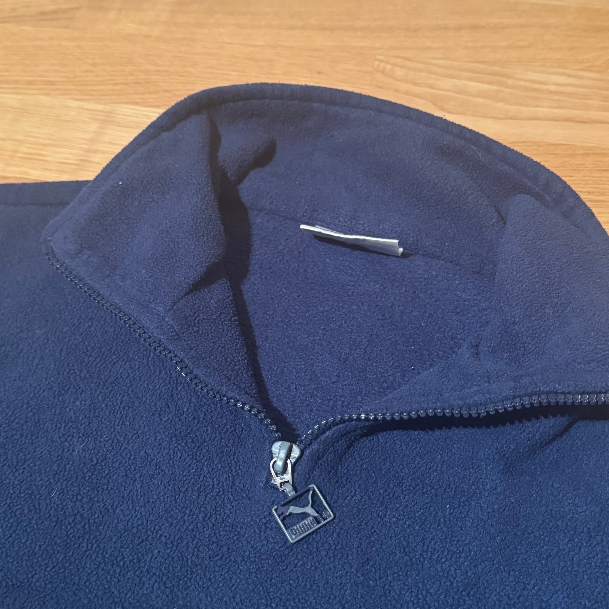 Puma vintage oversized fleece sweatshirt, this stylish sweater features a quarter zip and soft fleece material, offering both comfort and a classic retro look. Please note that this item is preowned and shows minor signs of wear. Item is an oversized S, please refer to the measurements indicated for accuracy.