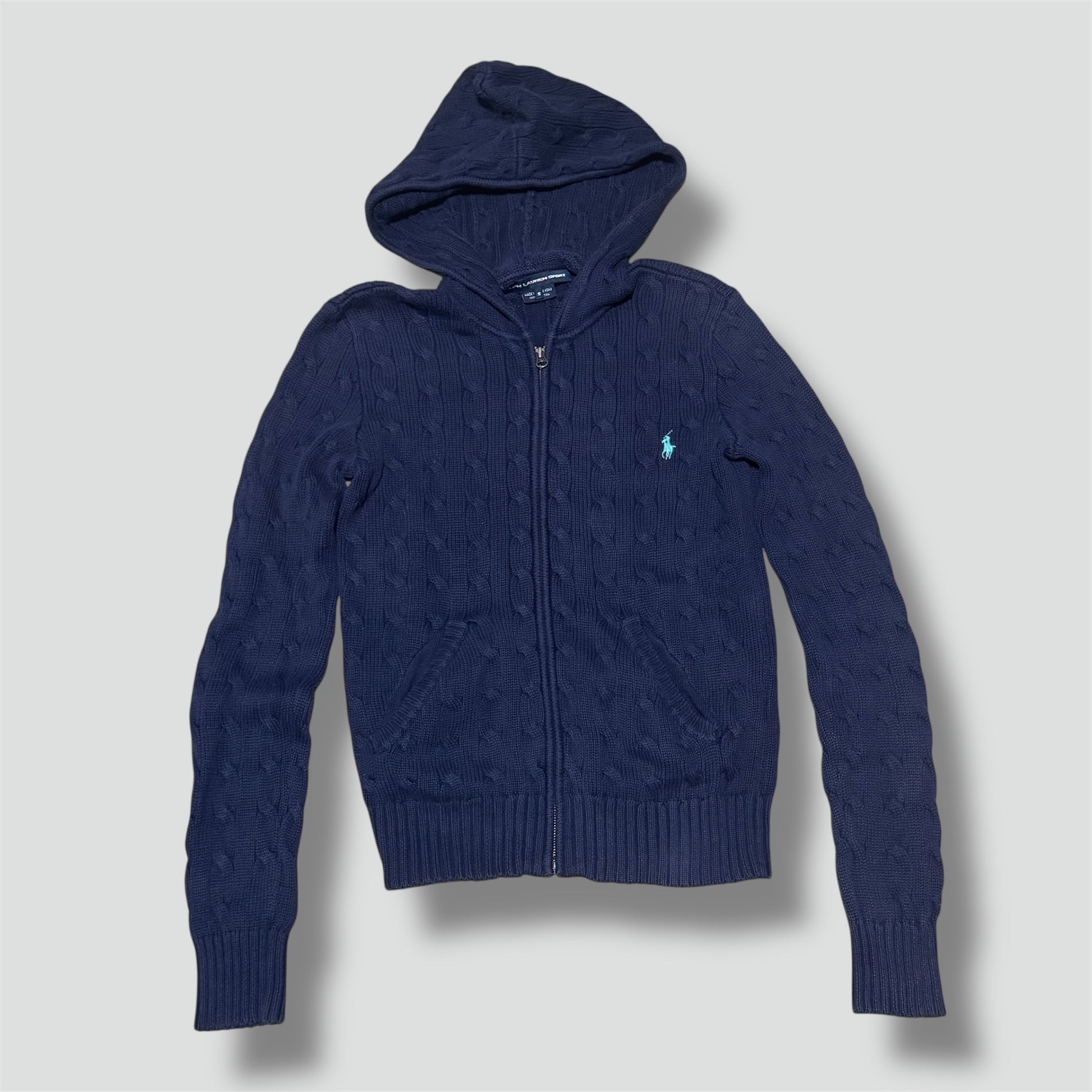 Ralph Lauren Sport knitted zip-up hoodie, this stylish women’s knitted jacket features a classic zip-up design and a cozy fit, perfect for casual wear. Please note that this item is preowned and may show minor signs of wear. Item is a size S for women.