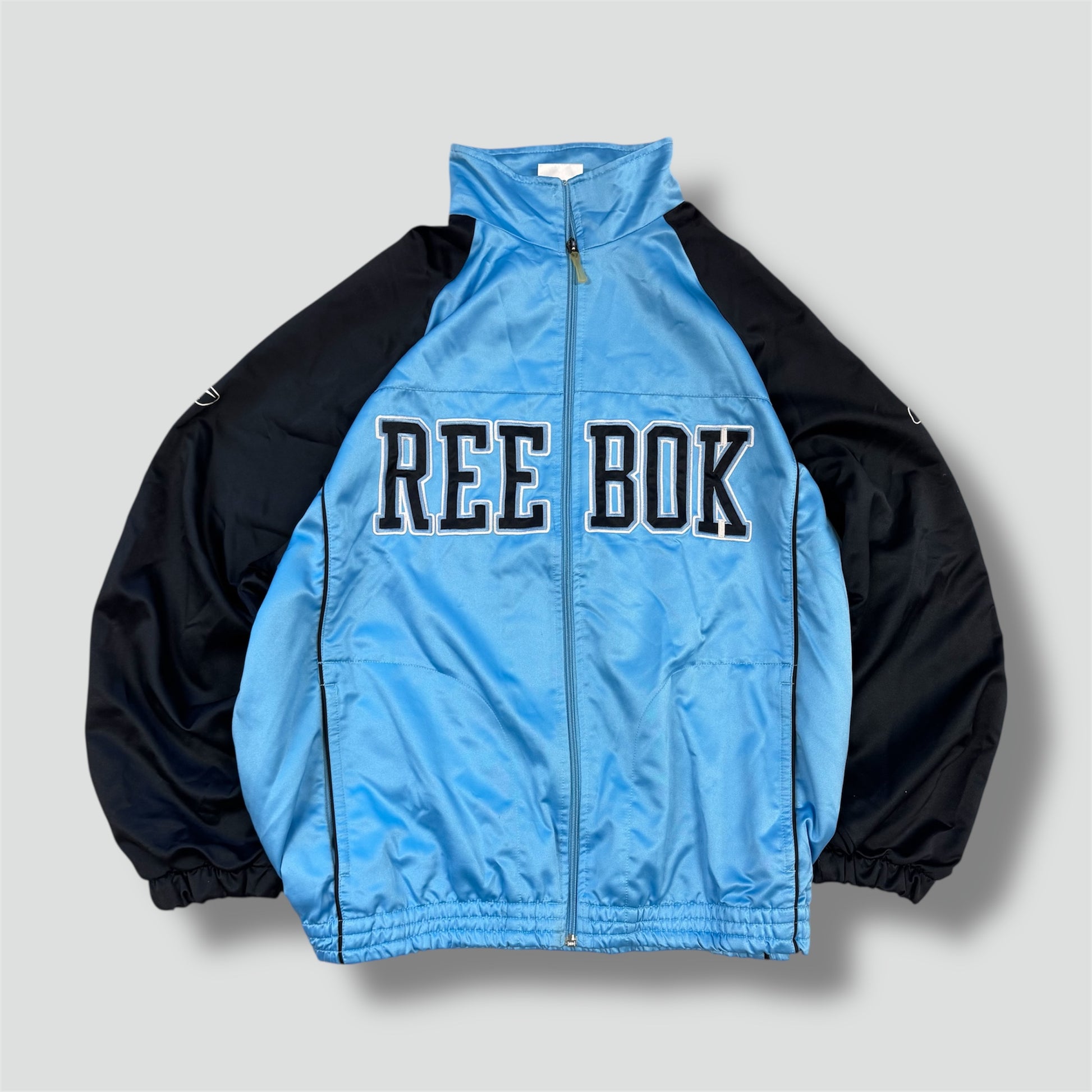 Reebok 56 oversized skyblue track jacket, this stylish retro track jacket is a perfect blend of sporty style and casual comfort, ideal for adding a pop of color to your wardrobe. Please note that this item is preowned and may show minor signs of wear. Item is an oversized size M, please refer to the measurements indicated for accuracy.