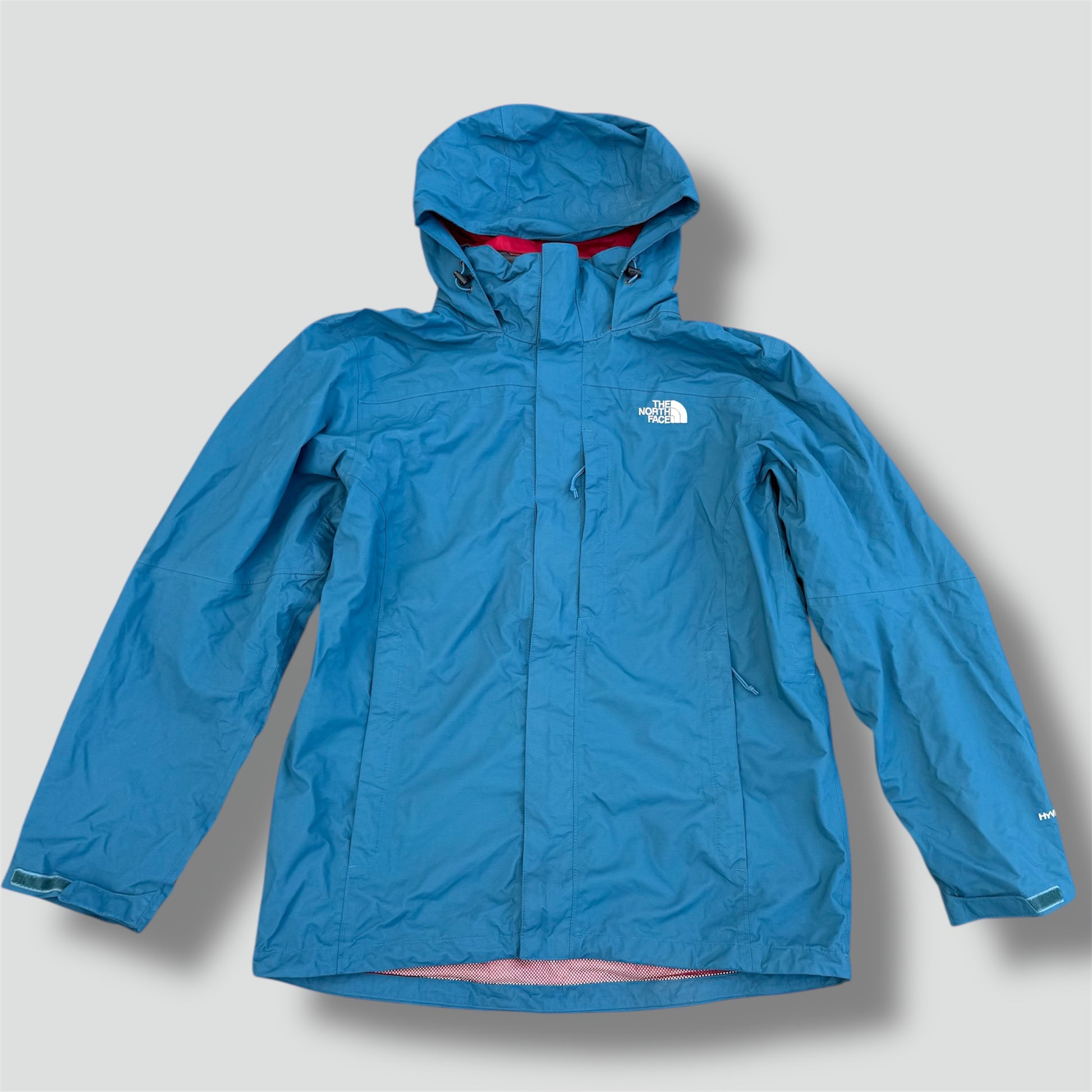 The North Face blue rain jacket, this stylish yet highly functional jacket from The North Face in light blue offers excellent protection and a classic outdoor look. Please note that this item is preowned and shows minor signs of wear consistent with its age. Item is a men’s size L, please refer to the measurements indicated for accuracy.