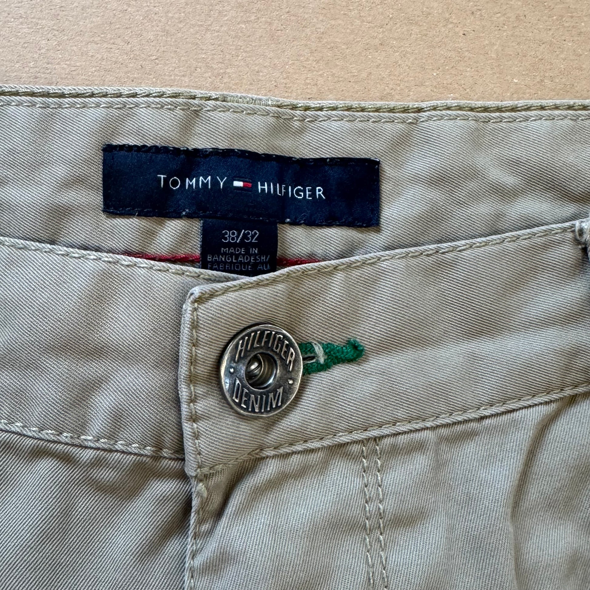 Tommy Hilfiger baggy chinos in beige color. This classic yet vintage piece offers a relaxed, timeless look perfect for both casual and streetwear styles. Please note that this item is preowned and shows minor signs of wear, including a small mark on the front visible in the pictures. Item size is 38/32—please refer to the measurements indicated for accuracy.