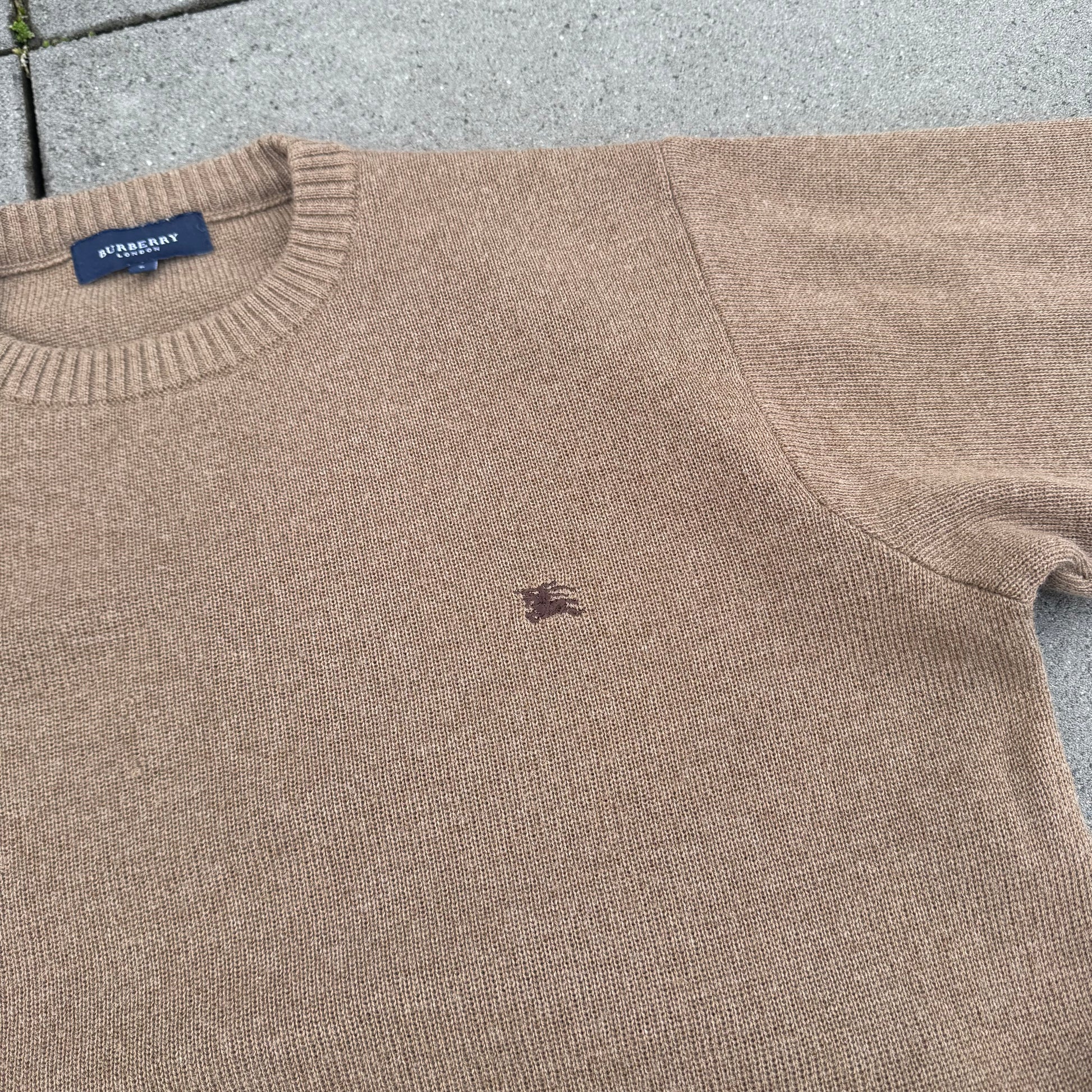 Vintage Burberry London merino wool crewneck, this stylish and authentic sweatshirt crafted from high-quality, warm merino wool is a timeless luxury piece perfect for colder seasons. please note that this item is preowned and shows minor signs of wear. item is a size 5, corresponding to a men’s M — please refer to the measurements for accuracy.