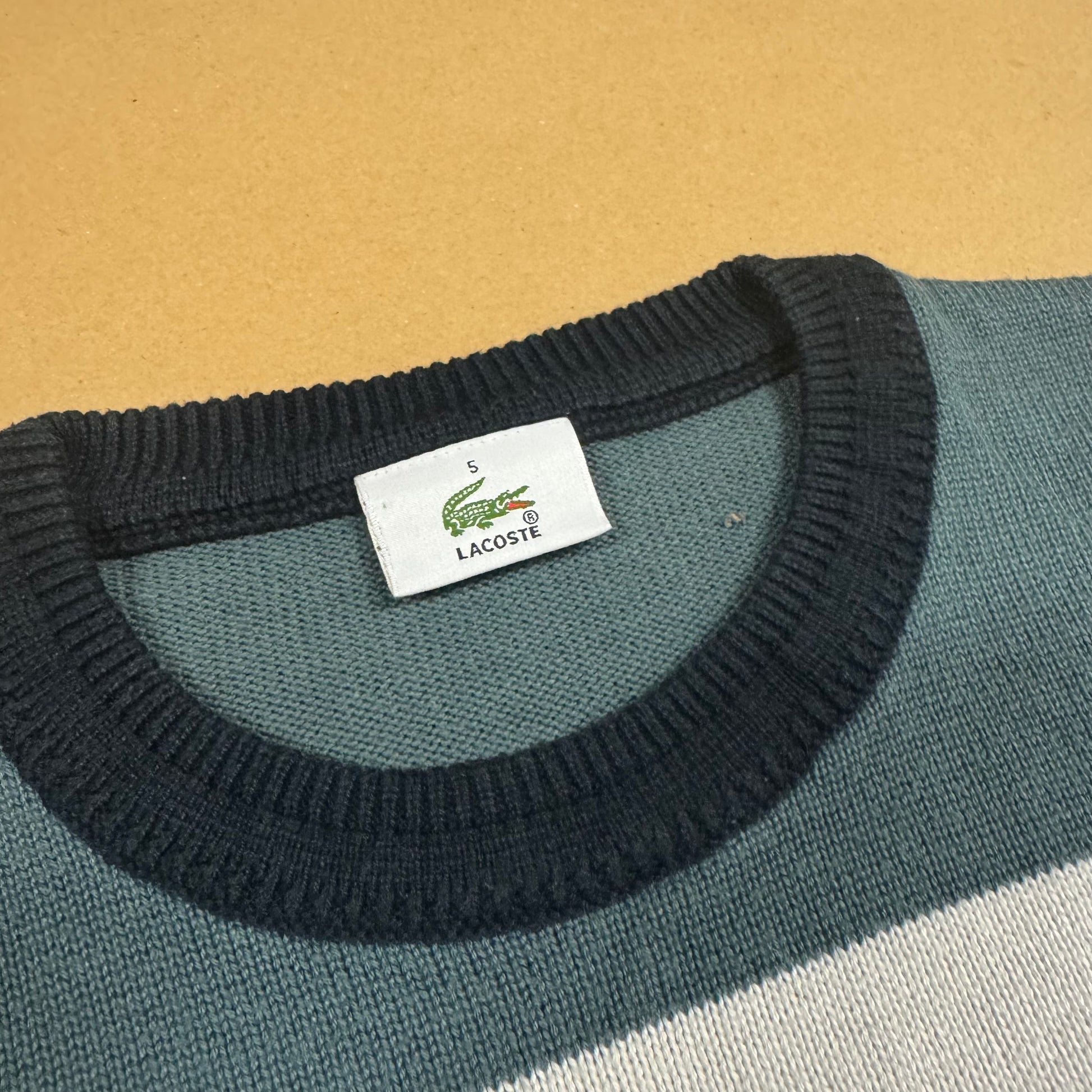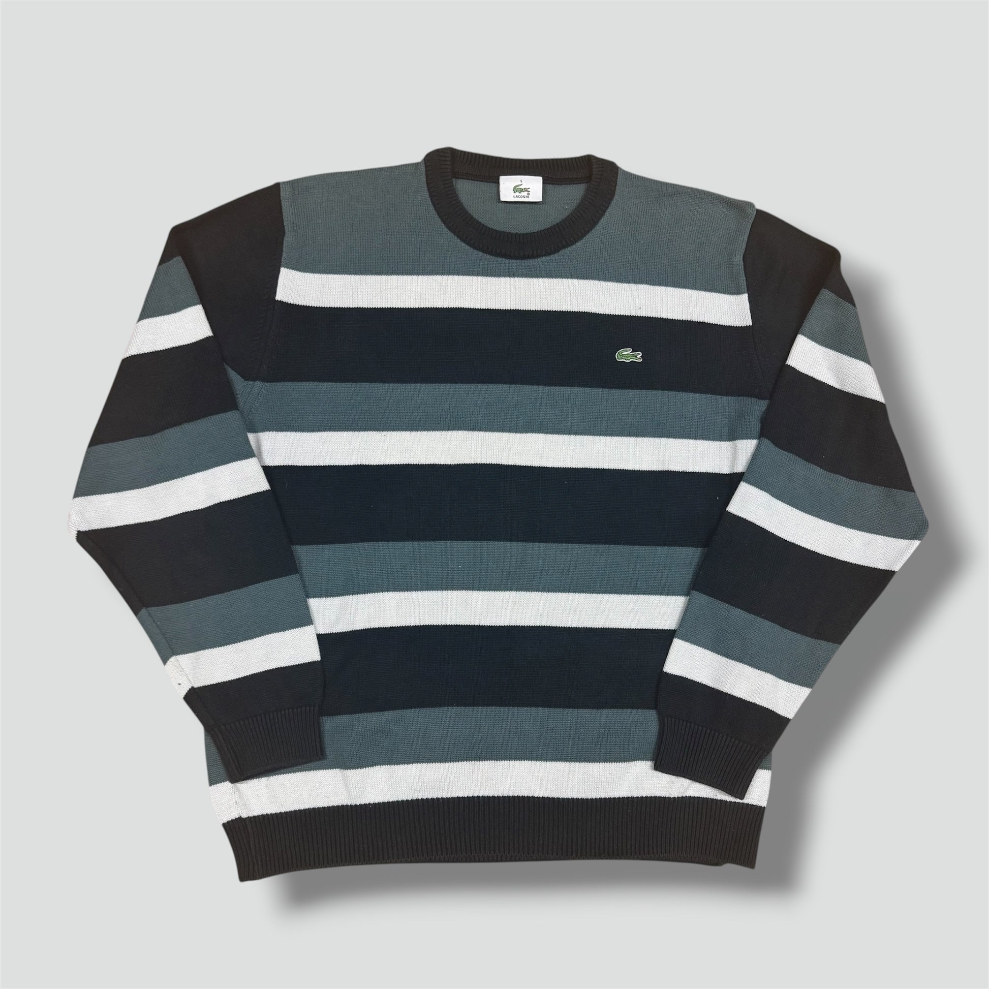 Vintage Lacoste striped knitted sweater, this stylish retro sweater features classic stripes and a comfortable knit design, perfect for casual and vintage-inspired outfits. Please note that this item is preowned and may show minor signs of wear. Item is a size 5, corresponding to an M, please refer to the measurements for accuracy.