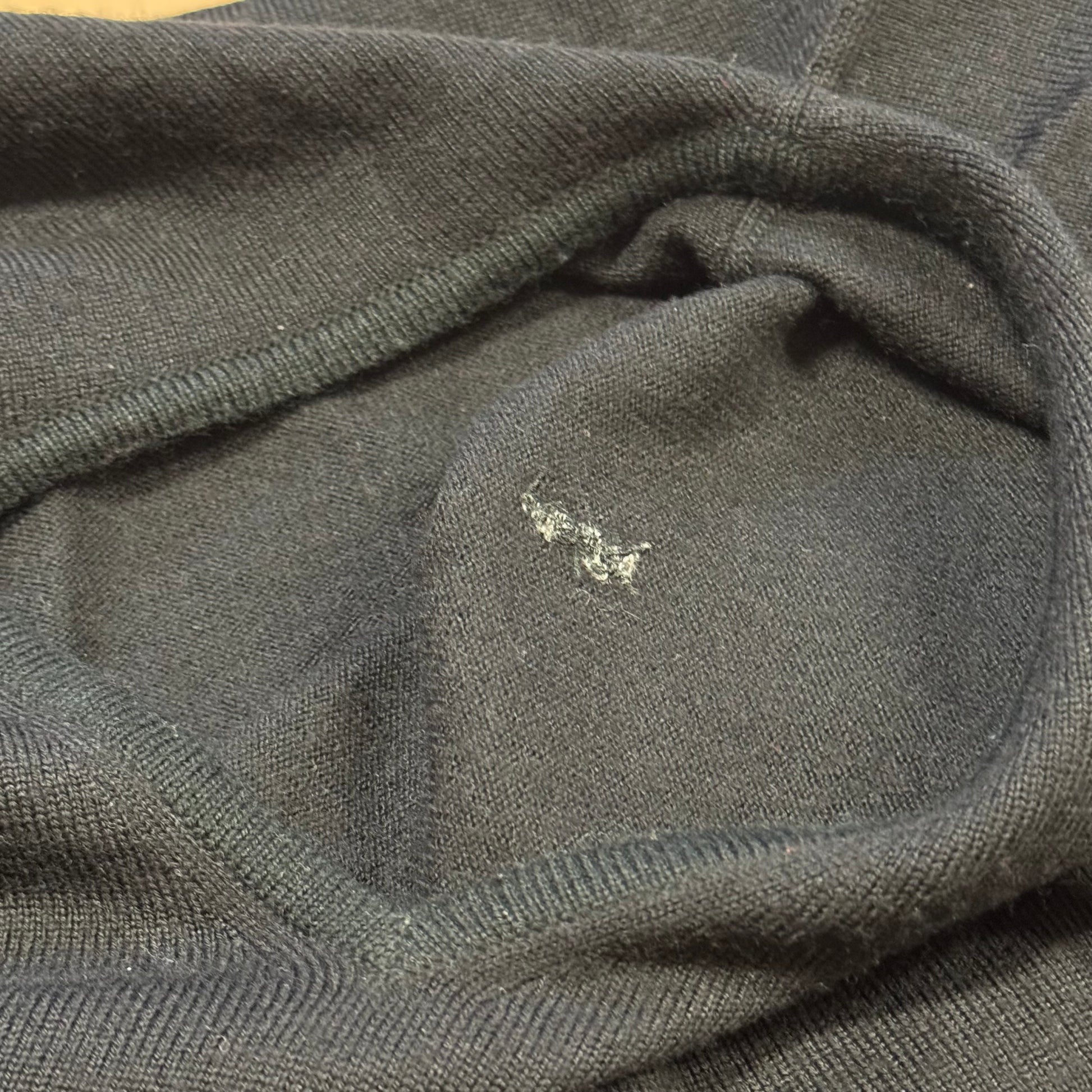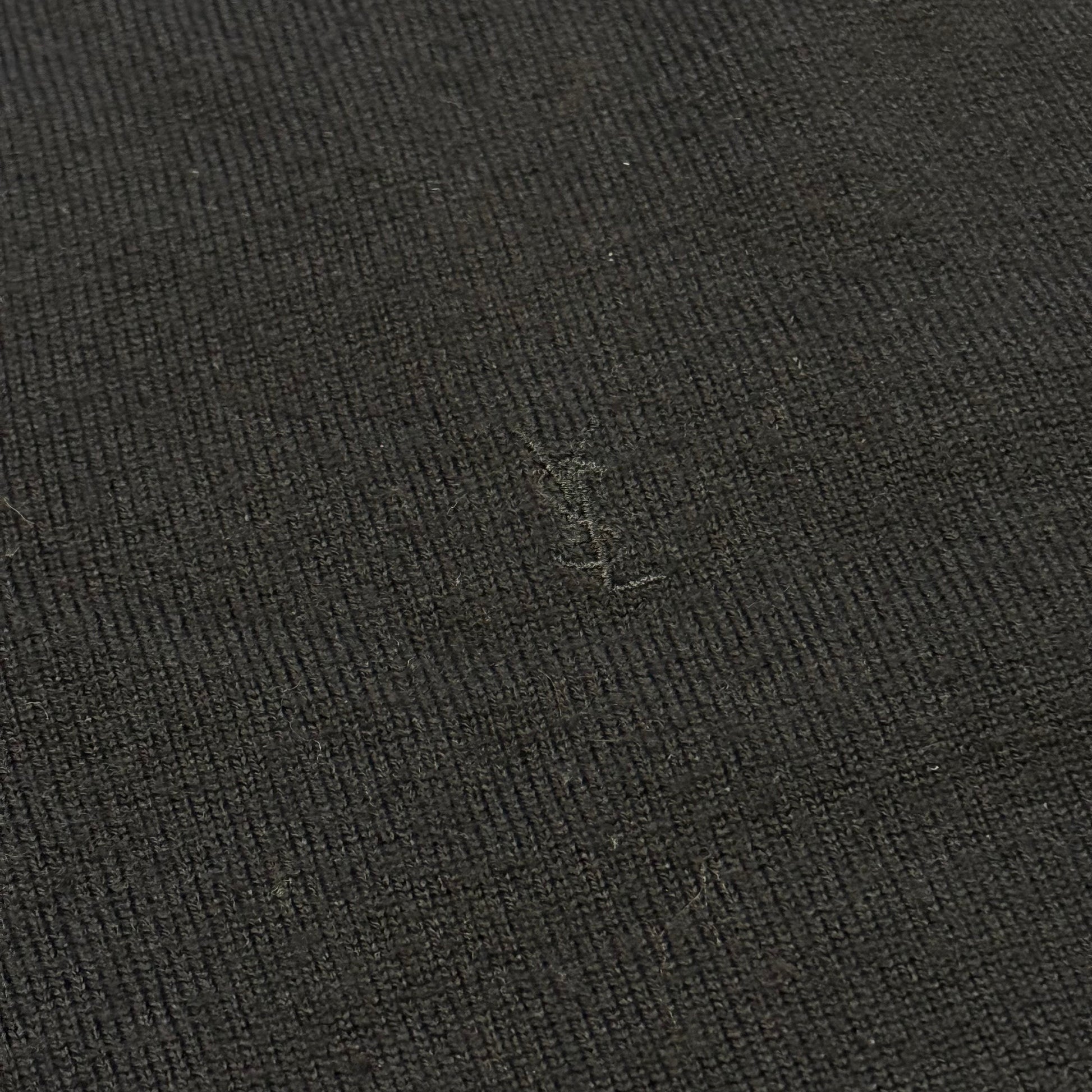 Yves Saint Laurent black on black wool sweatshirt, this stylish v-neck piece is crafted from fine merino wool, offering a luxurious yet understated vintage look suitable for both casual and elevated outfits. The thin wool construction provides comfort and elegance with a refined silhouette. Please note that this item is preowned and may show minor signs of wear consistent with its age. Item is a size L, please refer to the measurements indicated for accuracy.